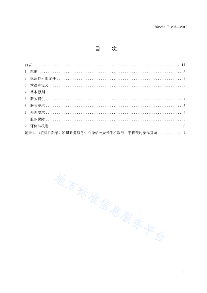 DB5226/T 205-2018 政务服务 网上预约分流服务规范
