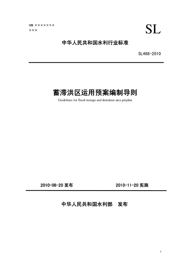 SL 488-2010 蓄滞洪区运用预案编制导则(征求意见稿)