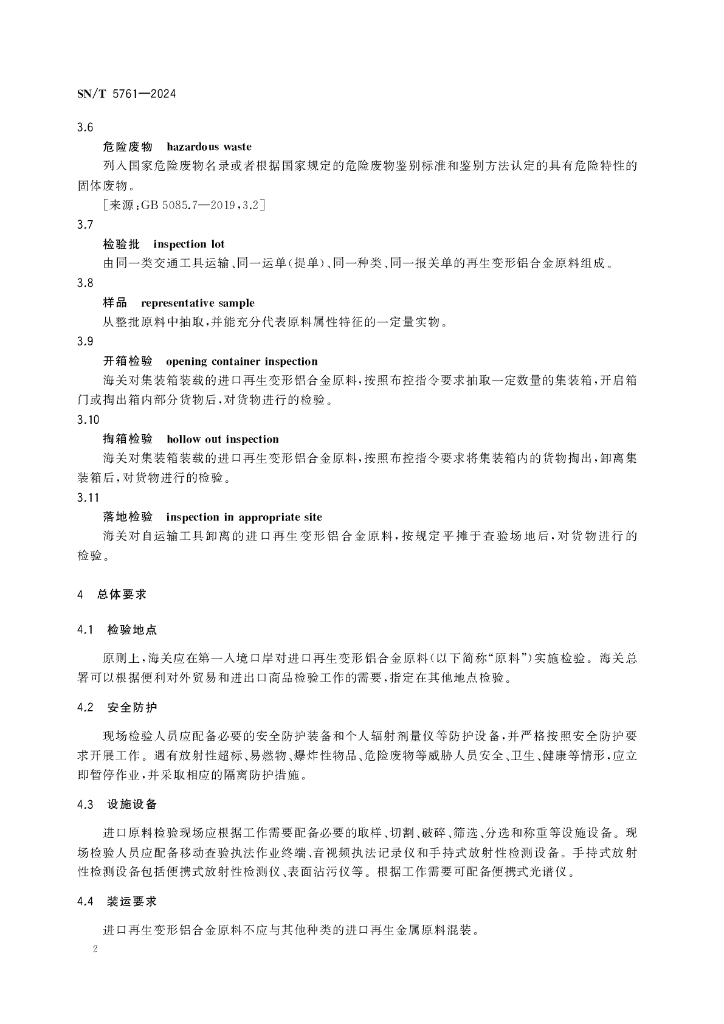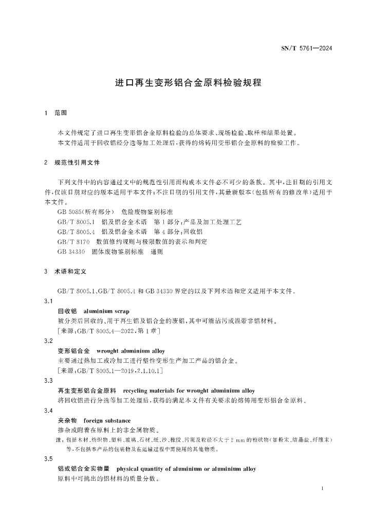 SN/T 5761-2024 进口再生变形铝合金原料检验规程