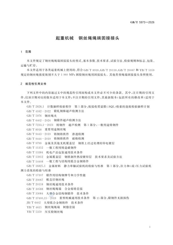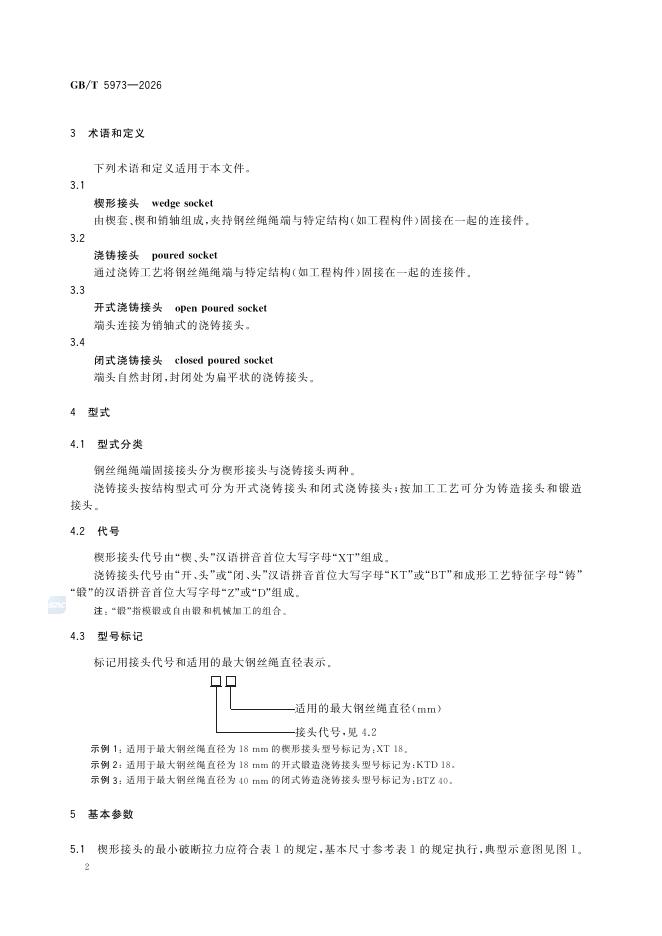 GB/T 5973-2026 起重机械 钢丝绳绳端固接接头