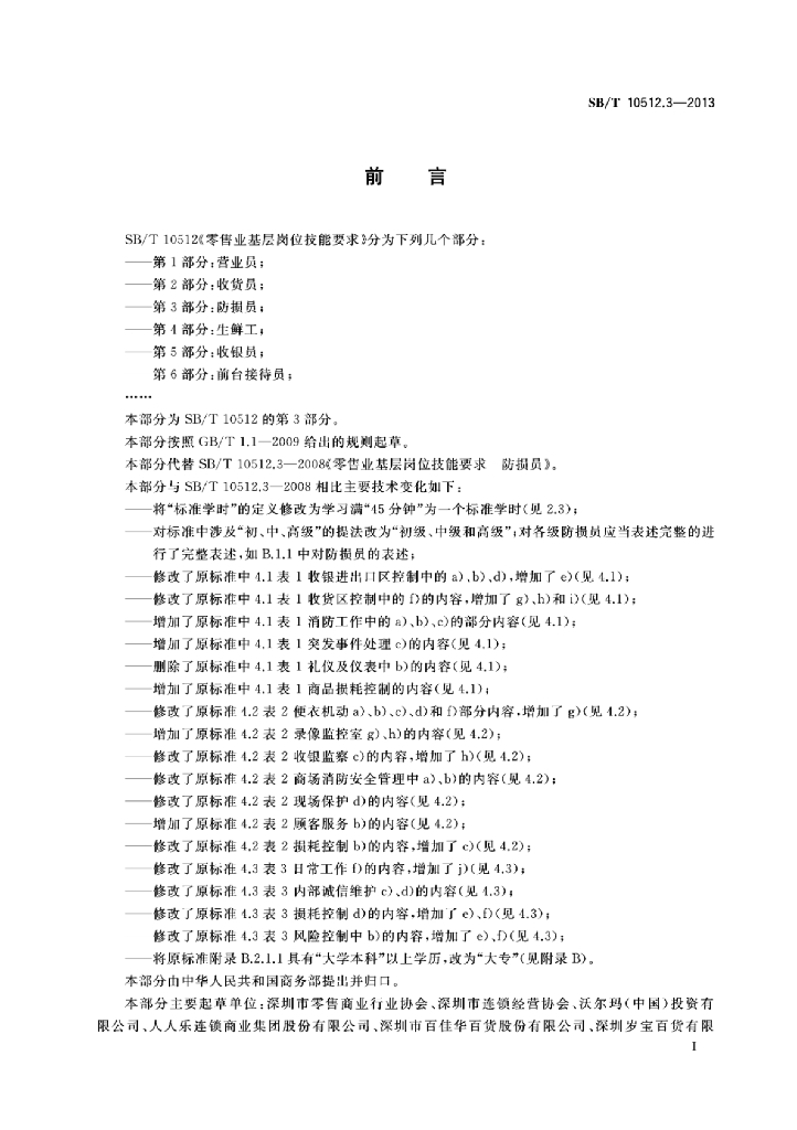 SB/T 10512.3-2013 零售业基层岗位技能要求 第3部分:防损员