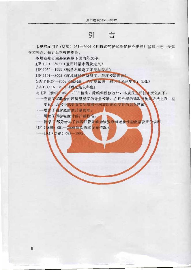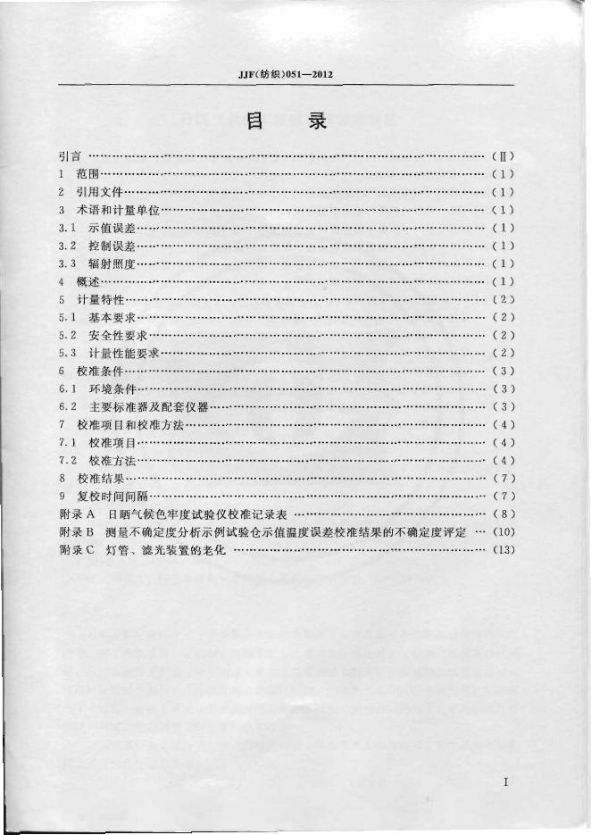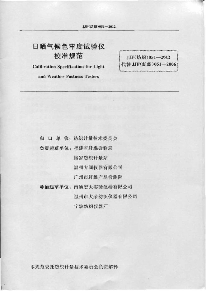 JJF(纺织)051-2012 日晒气候色牢度试验仪校准规范