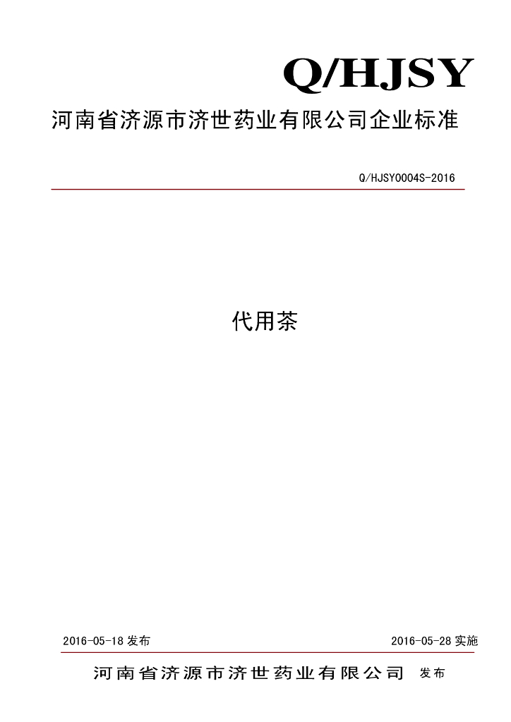 Q/HJSY 0004S-2016 河南省济源市济世药业有限公司 代用茶