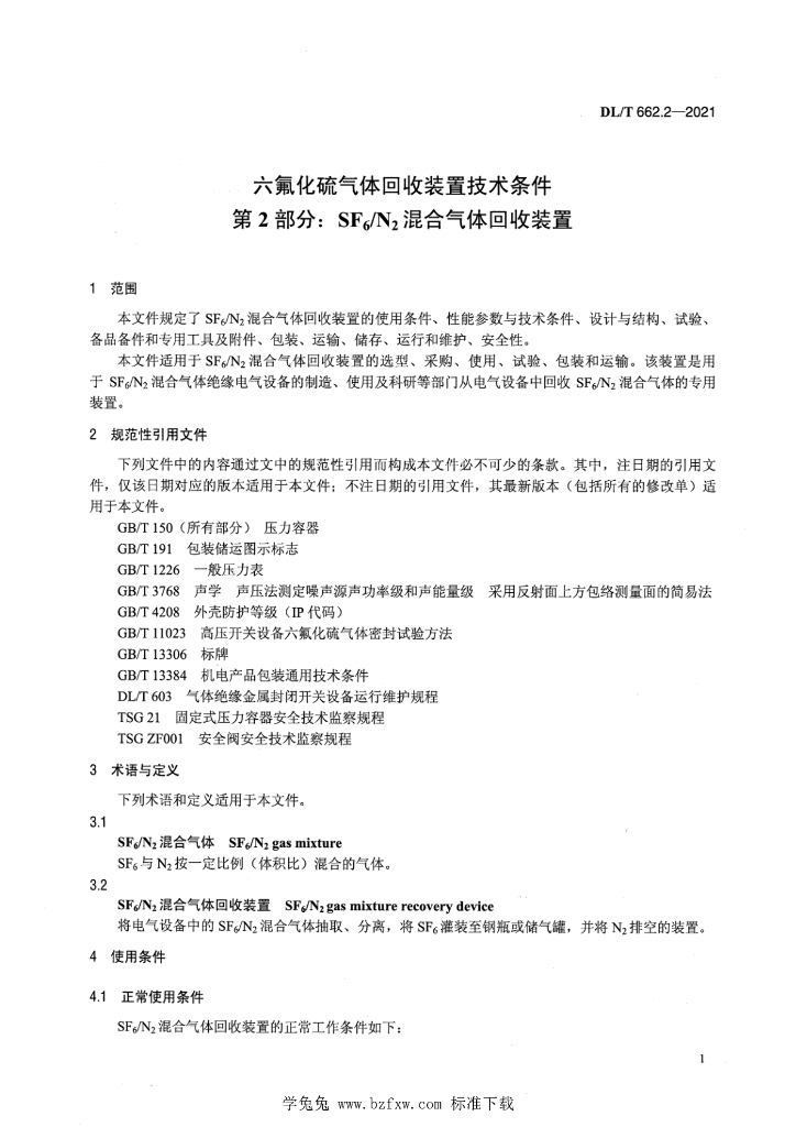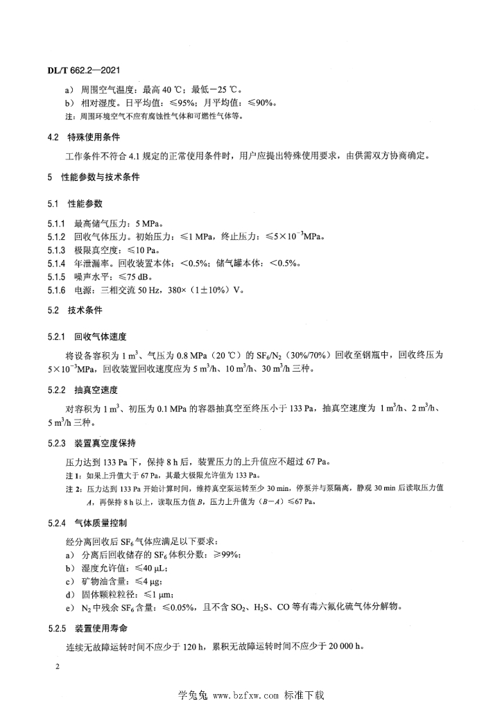 DL/T 662.2-2021 六氟化硫气体回收装置技术条件 第2部分:SF6N2混合气体回收装置