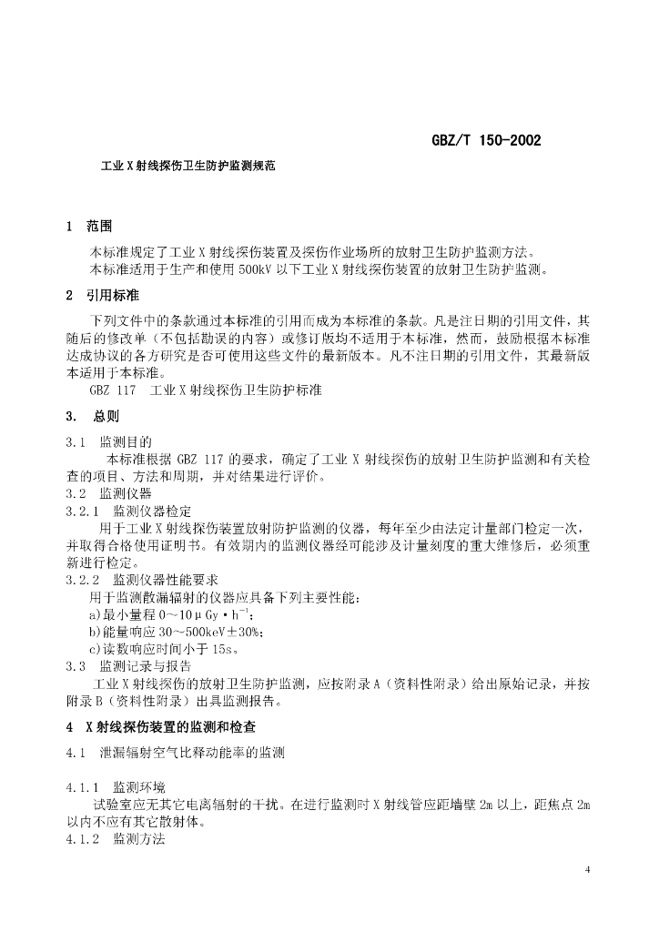 GBZ/T 150-2002 工业X射线探伤卫生防护监测规范