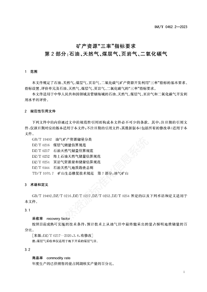 DZ/T 0462.2-2023 矿产资源“三率”指标要求 第2部分:石油、天然气、煤层气、页岩气、二氧化碳气