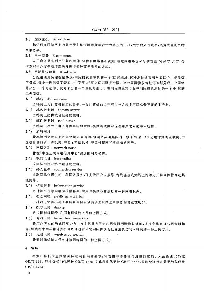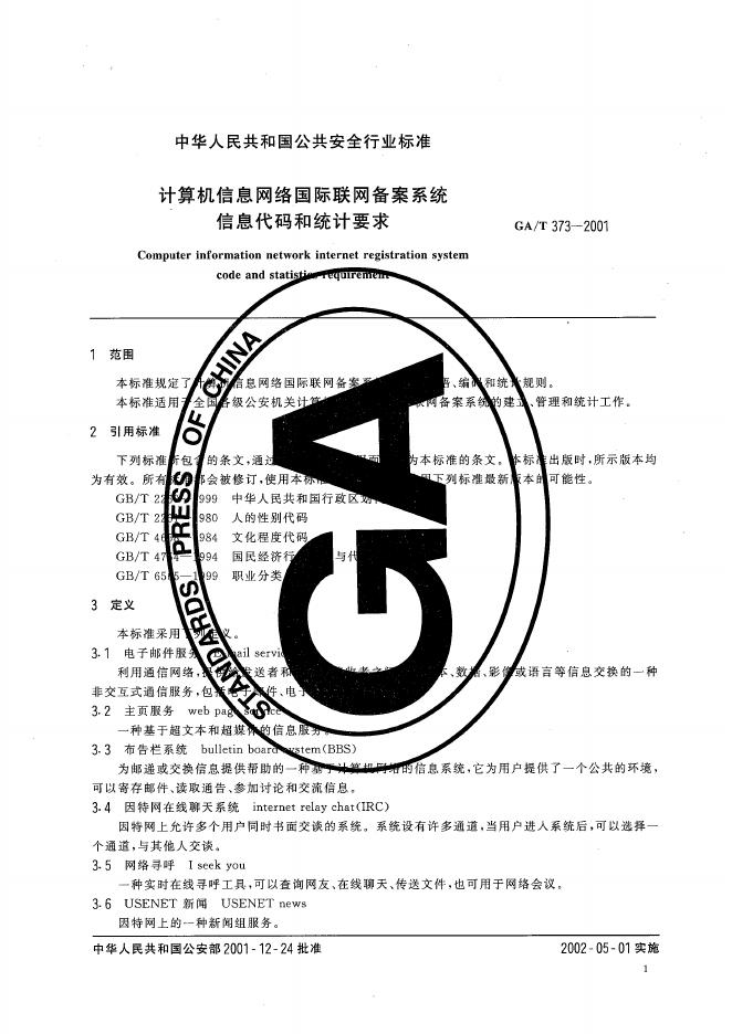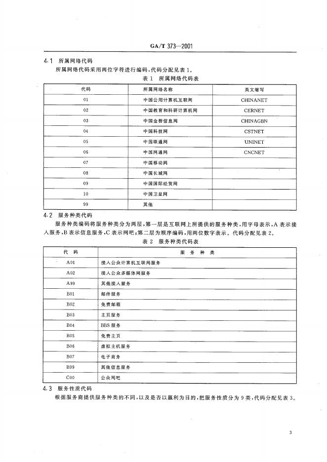 GA/T 373-2001 计算机信息网络国际联网备案系统信息代码和统计要求
