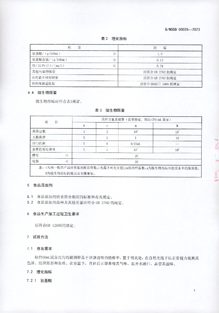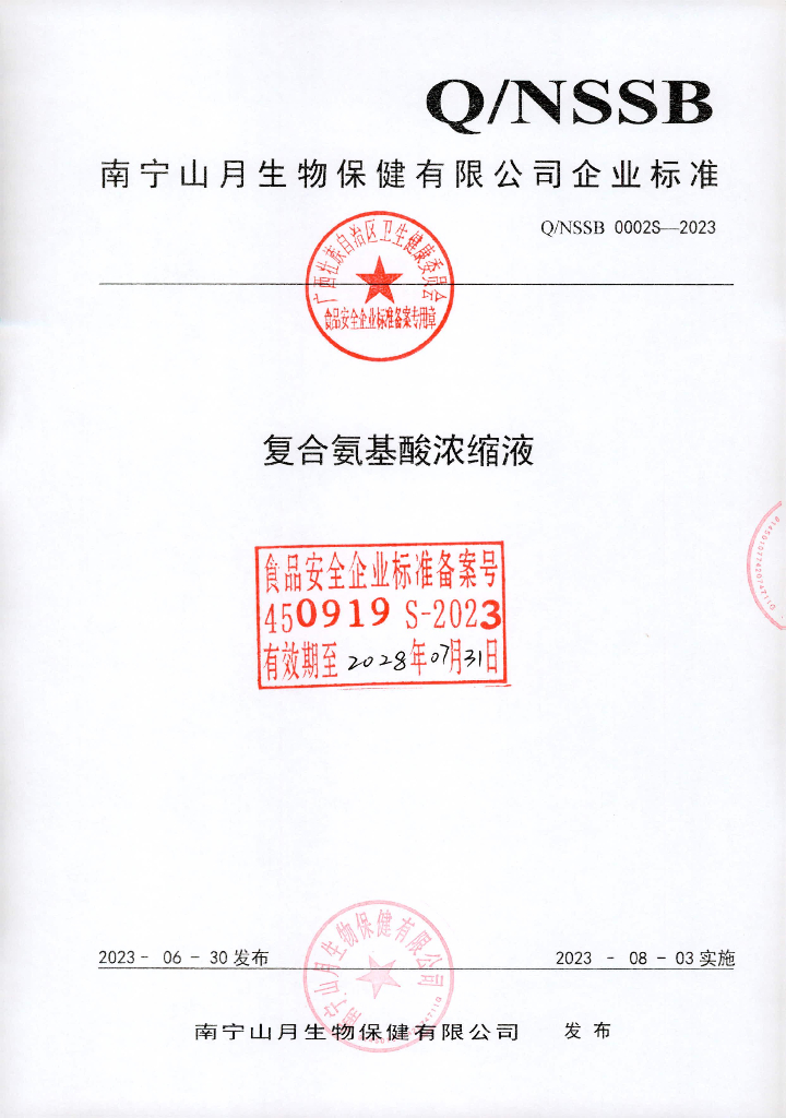 Q/NSSB 0002S-2023 复合氨基酸浓缩液