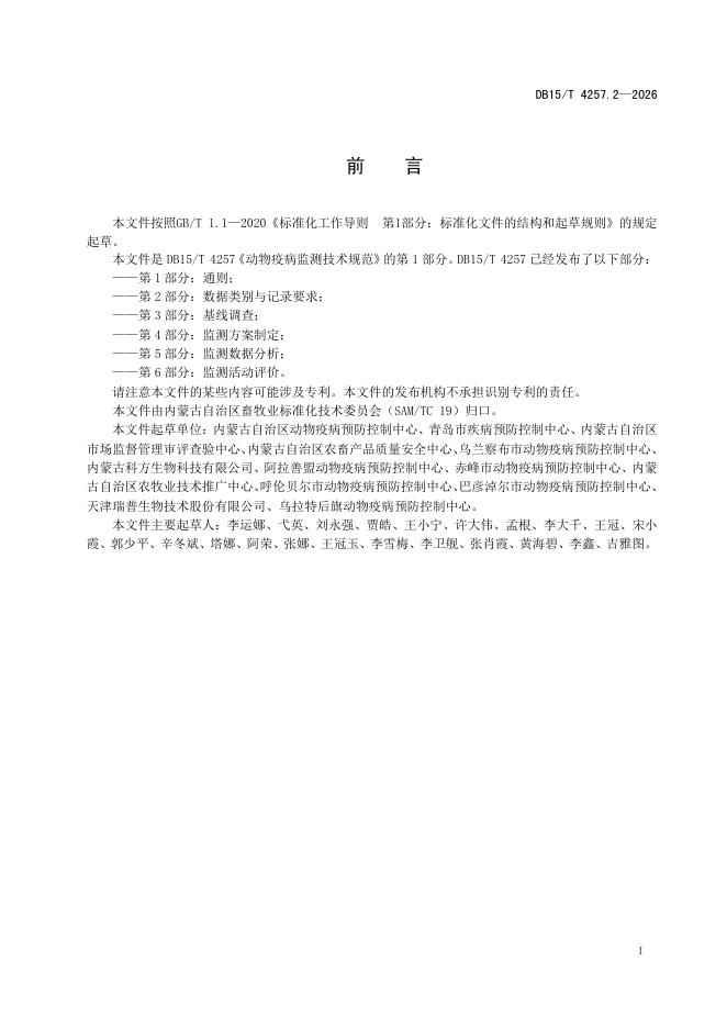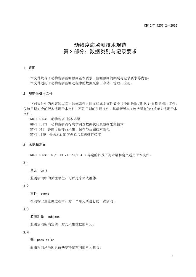 DB15/T 4257.2-2026 动物疫病监测技术规范 第2部分:数据类别与记录要求