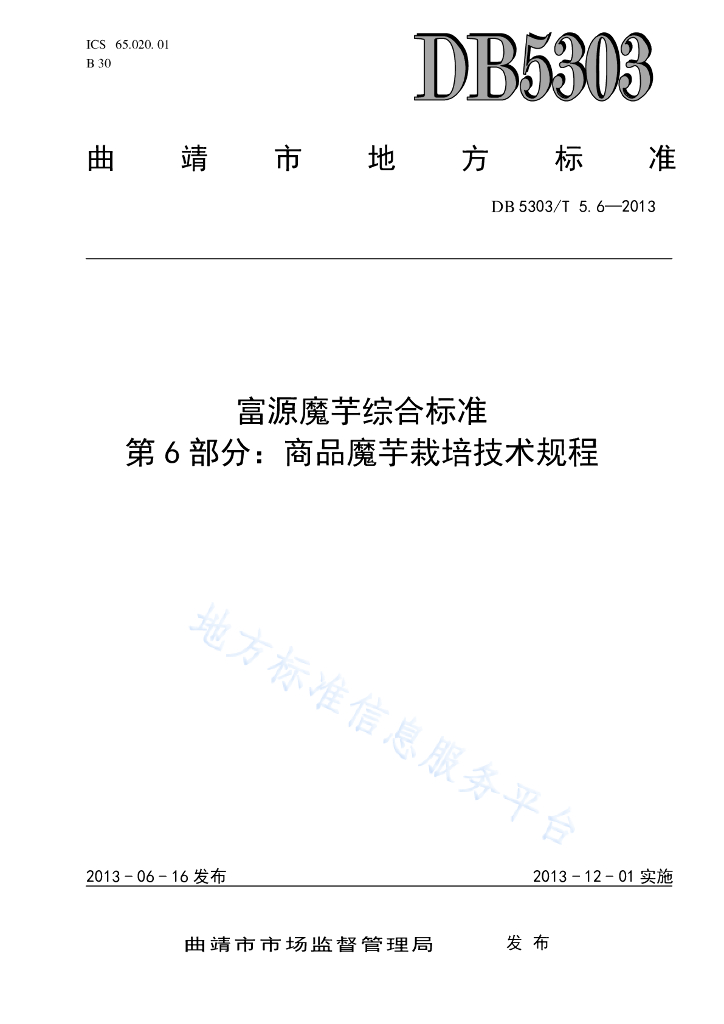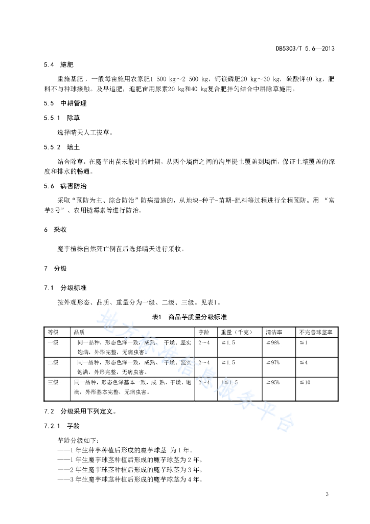 DB5303/T 5.6-2013 富源魔芋综合标准 第6部分:商品魔芋栽培技术规程