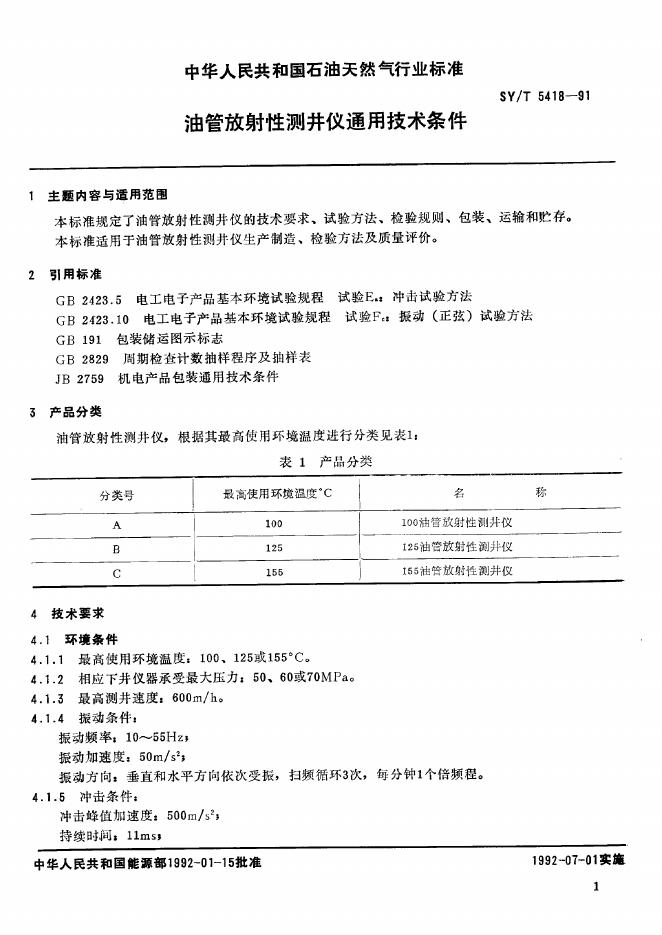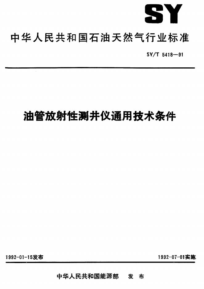 SY/T 5418-1991 油管放射性测井仪通用技术条件