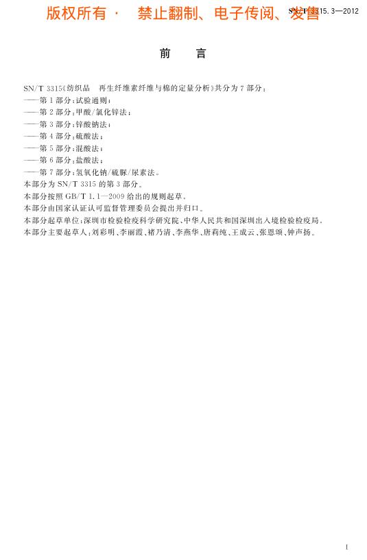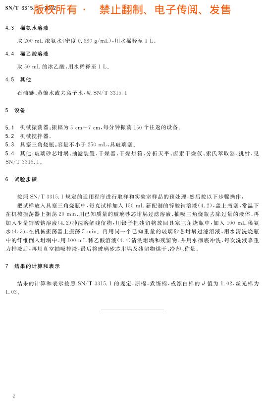 SN/T 3315.3-2012 纺织品 再生纤维素纤维与棉的定量分析 第3部分:锌酸钠法