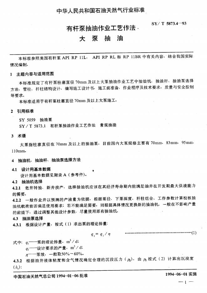 SY/T 5873.4-1993 有杆泵抽油作业工艺作法 大泵抽油