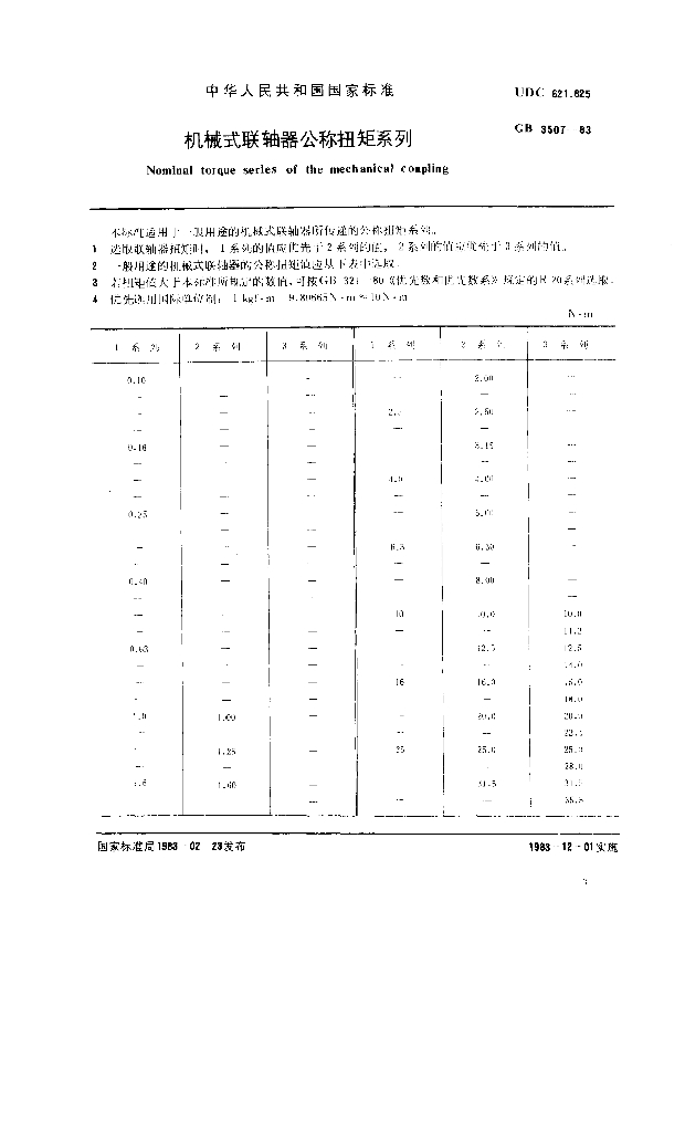 GB/T 3507-1983 机械式联轴器公称扭矩系列 标准下载