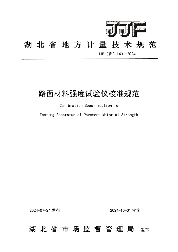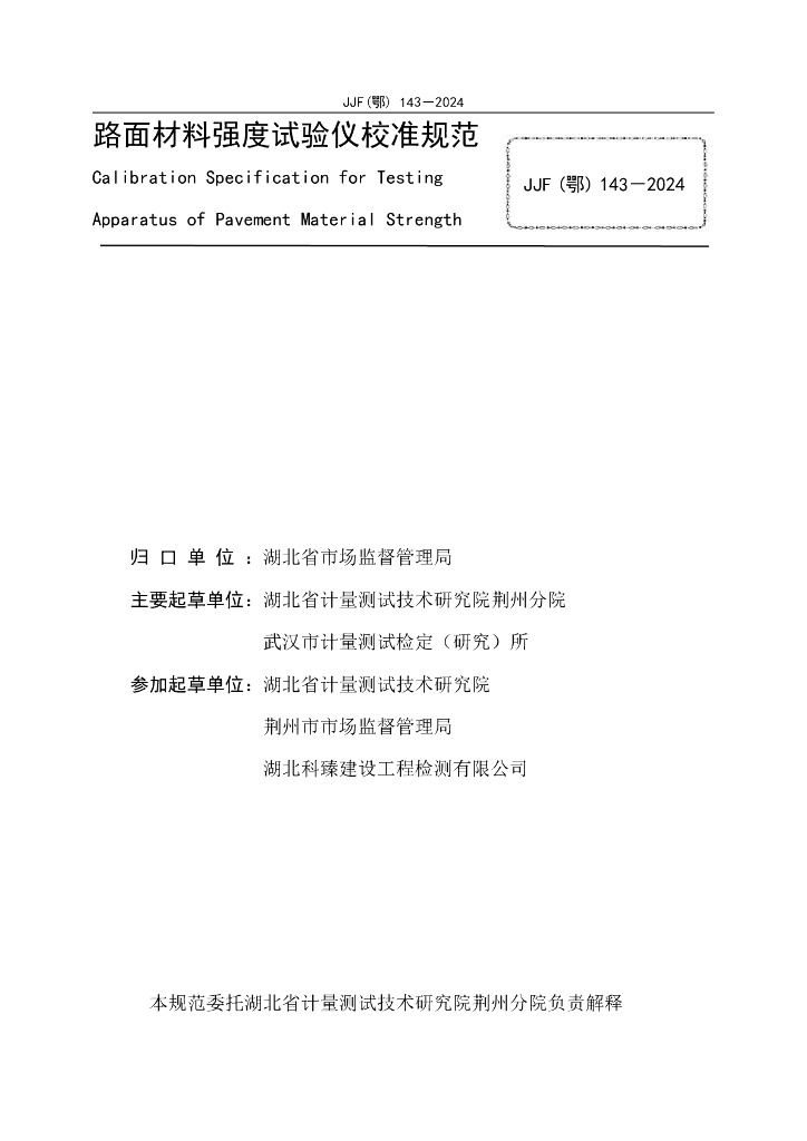 JJF(鄂)143-2024 路面材料强度试验仪校准规范