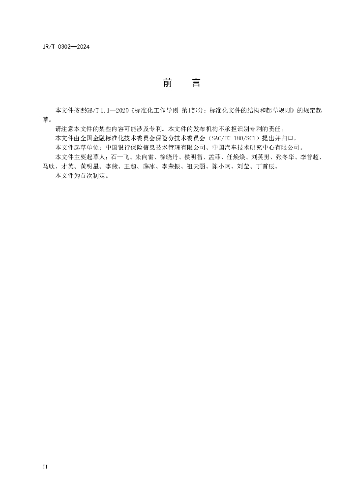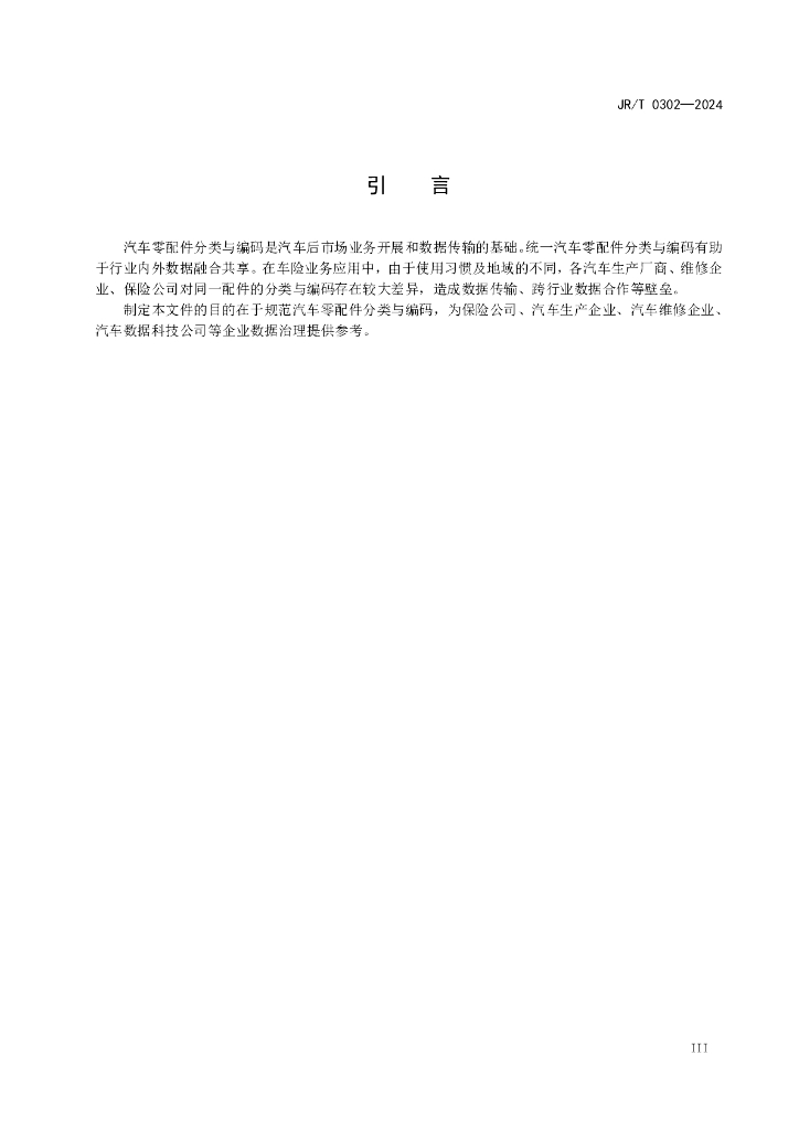 JR/T 0302-2024 保险行业常用汽车零配件分类与编码