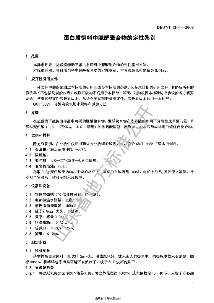 DB37/T 1204-2009 蛋白质饲料中脲醛聚合物的定性鉴别