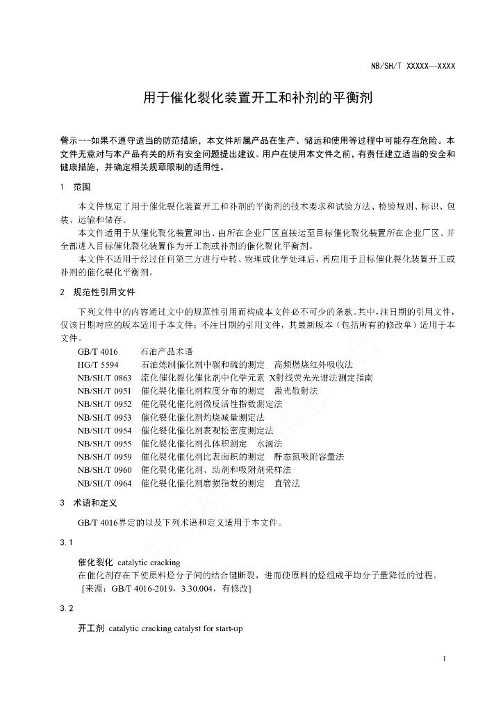 NB/SH/T 6068-2022 用于催化裂化装置开工和补剂的平衡剂