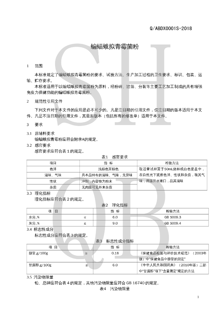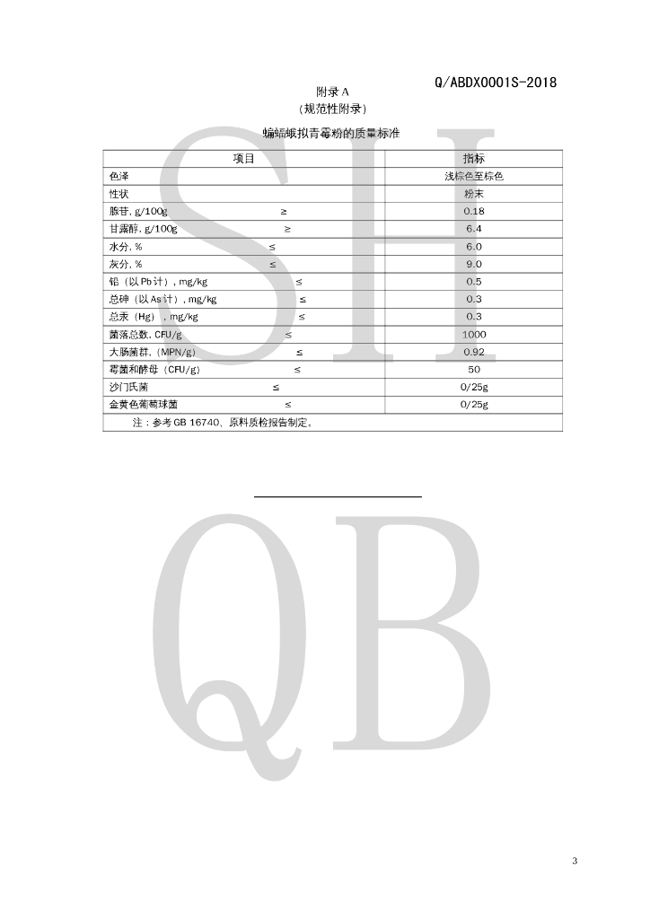 Q/ABDX 0001S-2018 蝙蝠蛾拟青霉菌粉