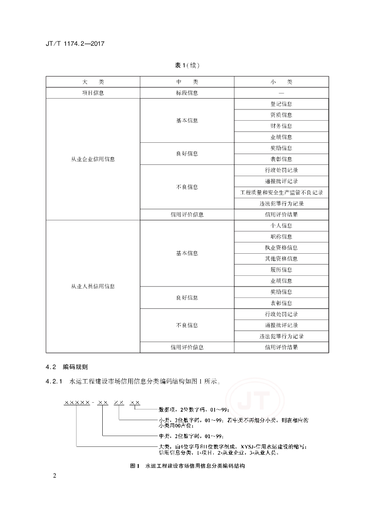 JT/T 1174.2-2017 公路水路建设与运输市场信用信息分类编码与格式 第2部分:水运工程建设市场