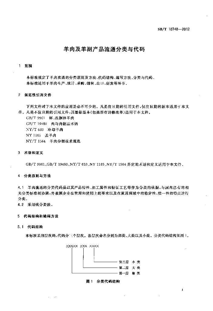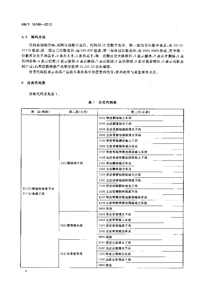 SB/T 10748-2012 羊肉及羊副产品流通分类与代码