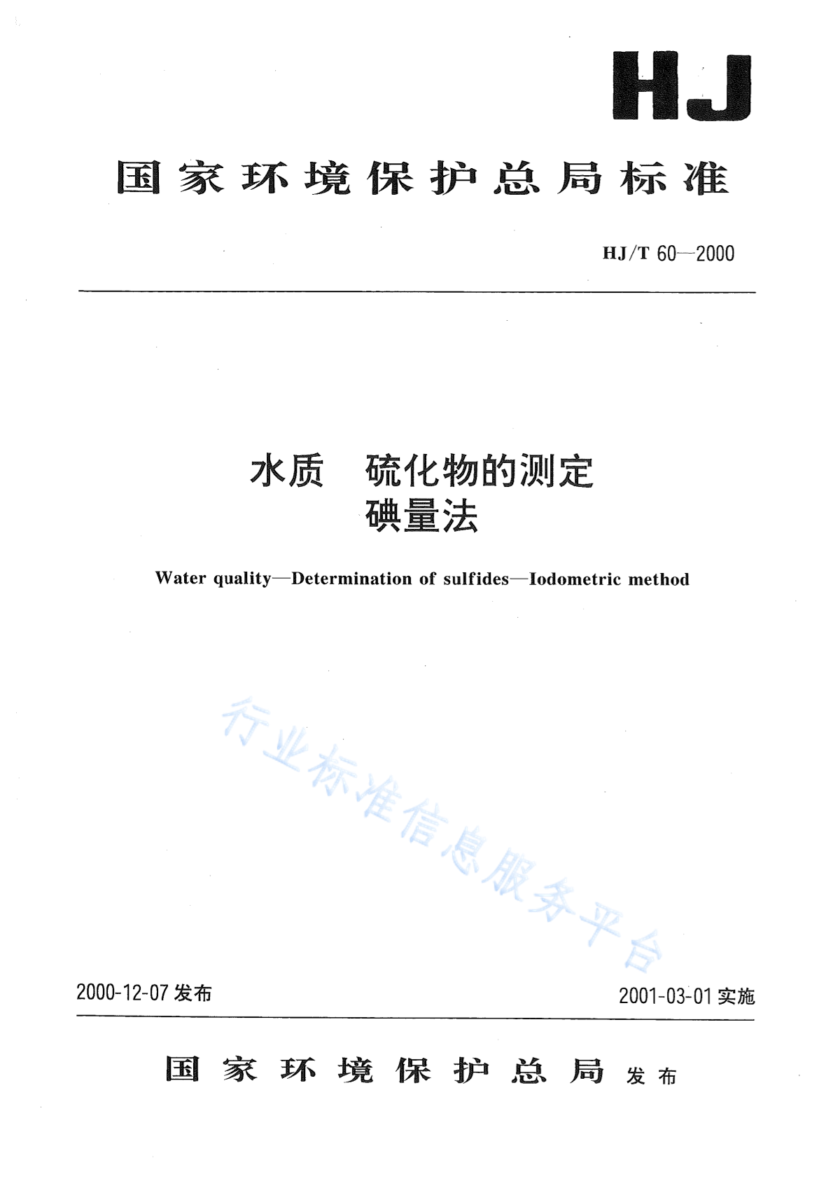 HJ/T 60-2000 水质 硫化物的测定 碘量法