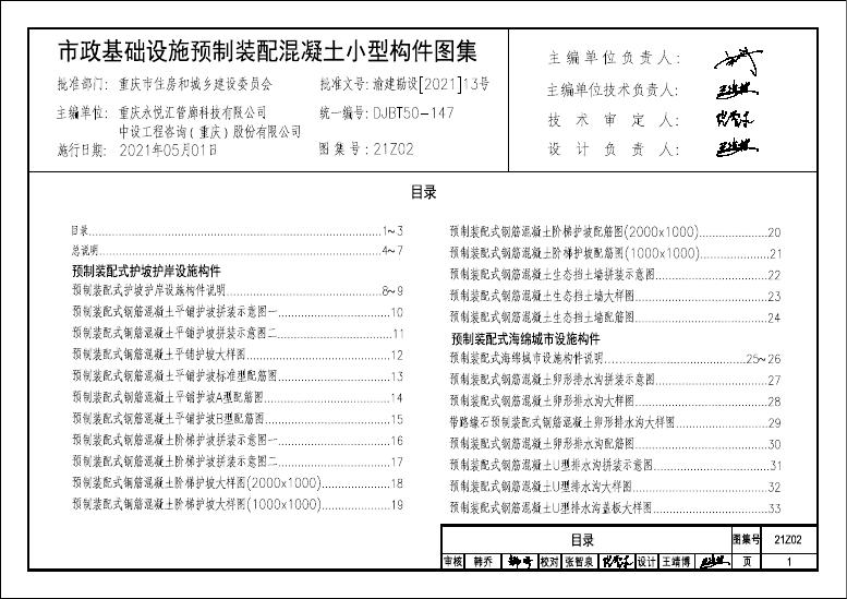 渝21Z02 市政基础设施预制装配混凝土小型构件图集(DJBT50-147)