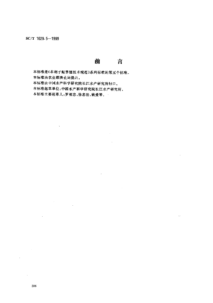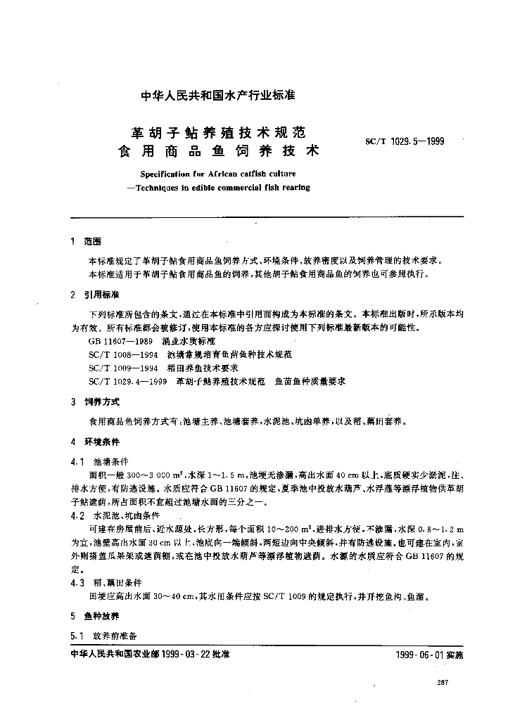 SC/T 1029.5-1999 革胡子鲇养殖技术规范 食用商品鱼饲养技术