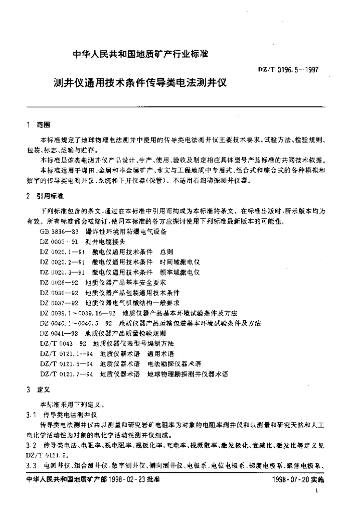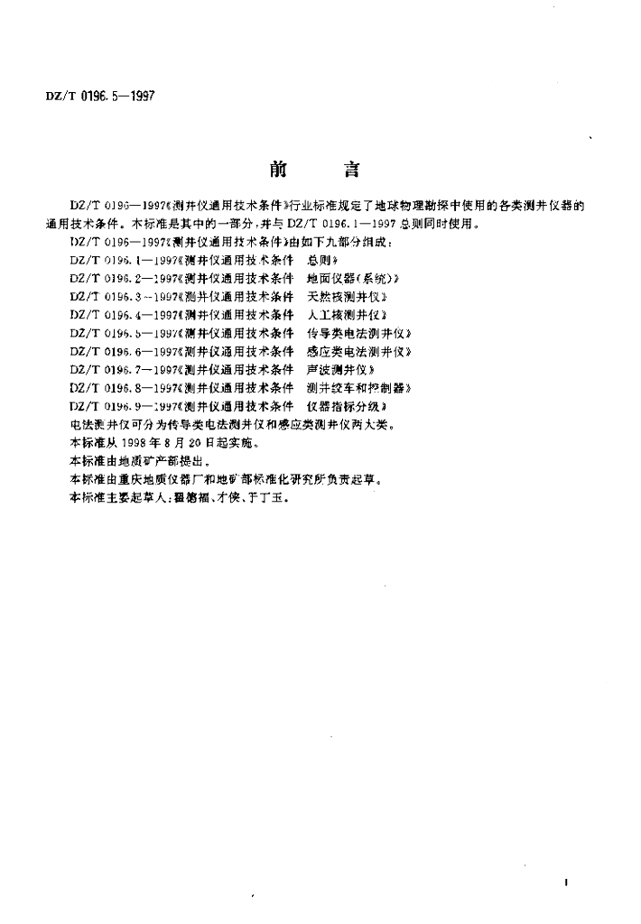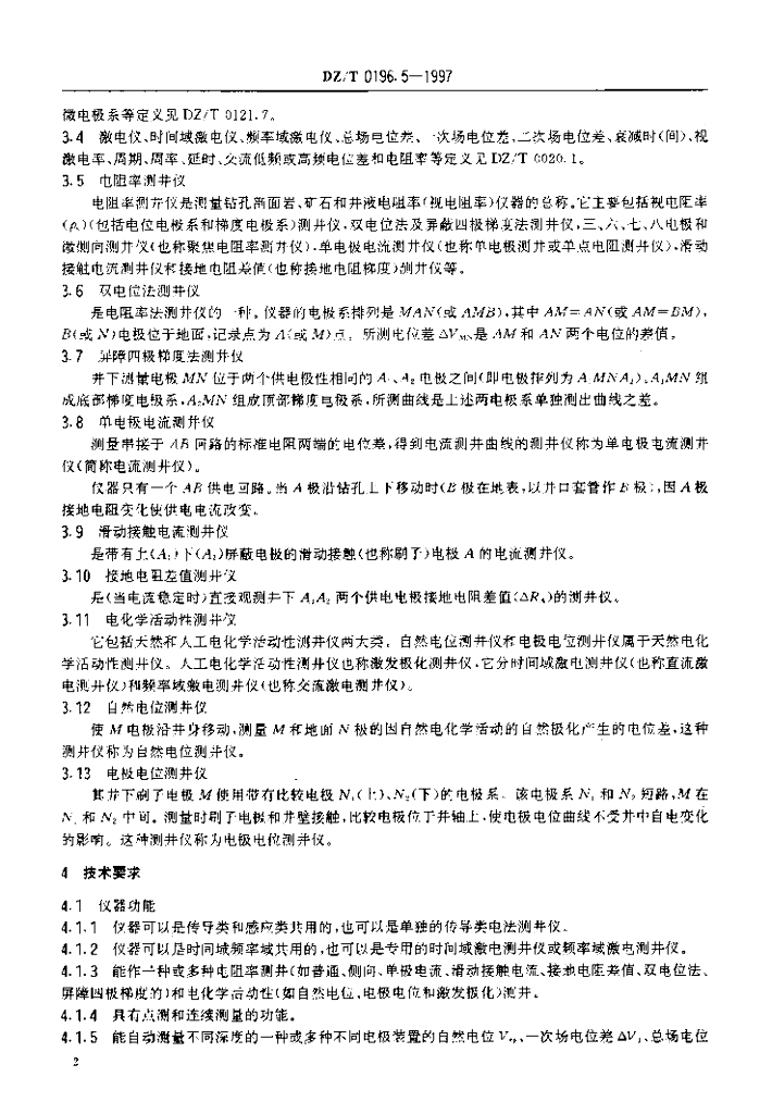 DZ/T 0196.5-1997 测井仪通用技术条件传导类电法测井仪