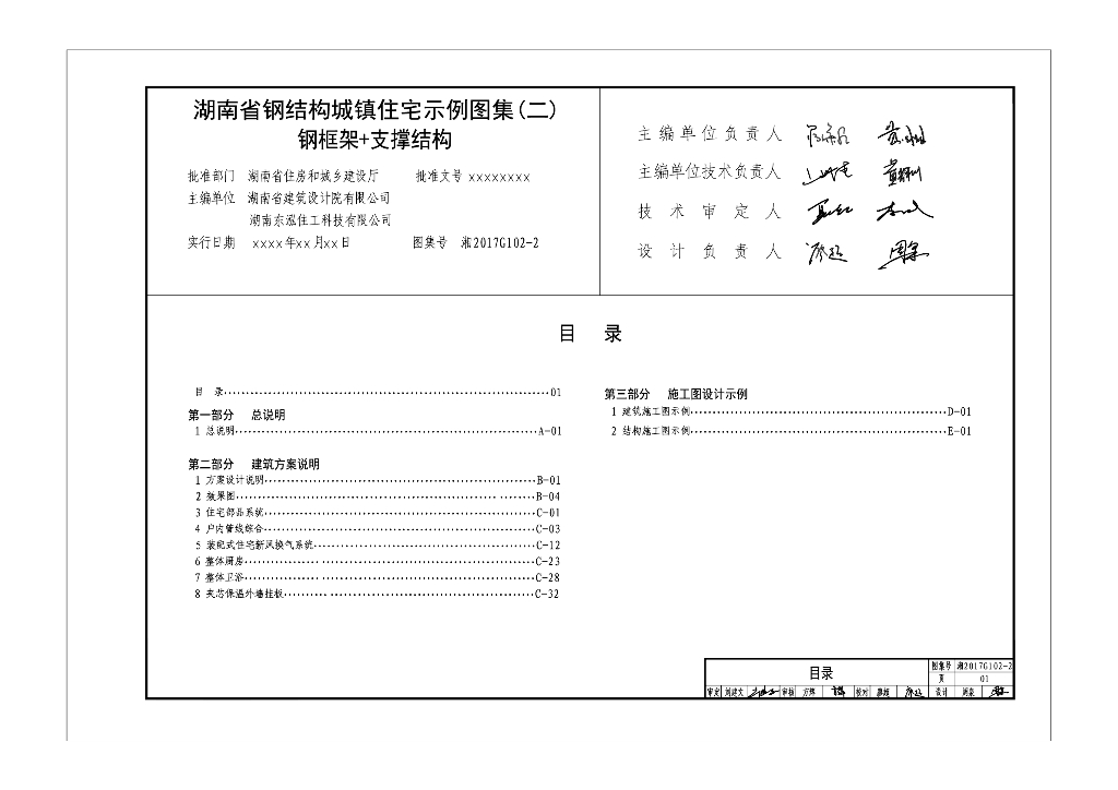 湘2017G102-2 钢结构城镇住宅示例钢框架+支撑结构图集