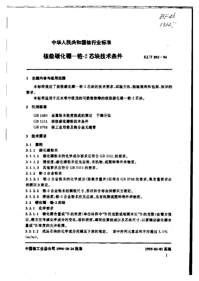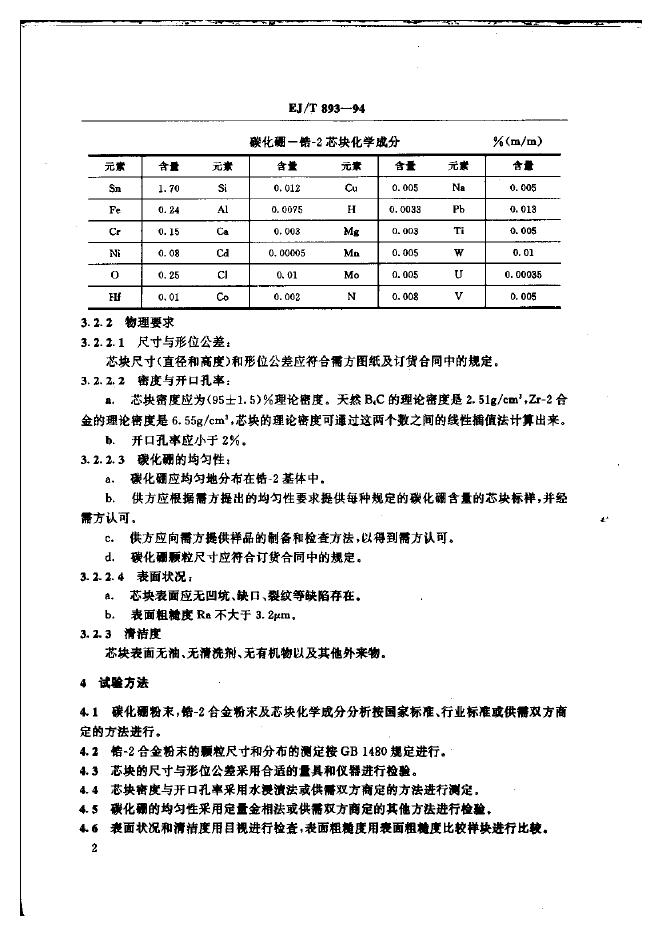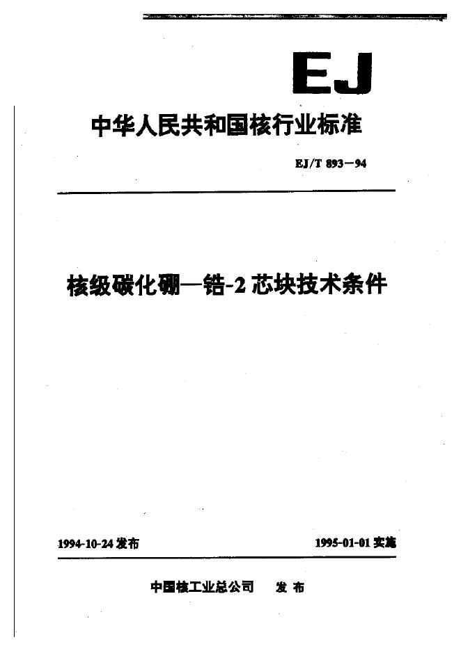 EJ/T 893-1993 核级碳化硼-锆-2芯块技术条件