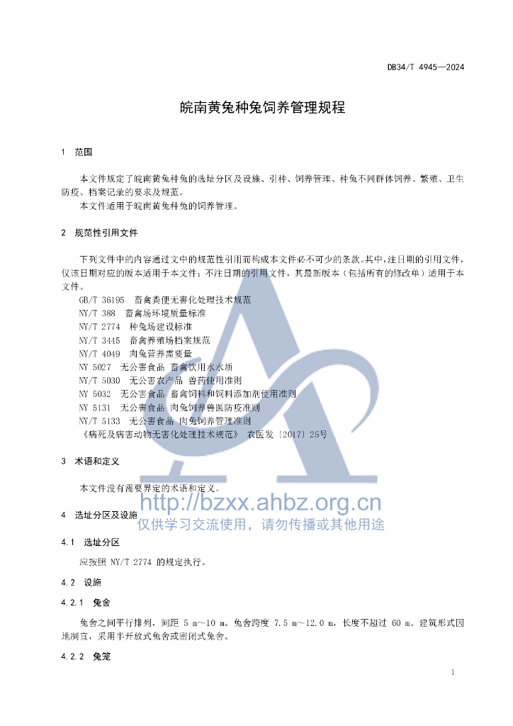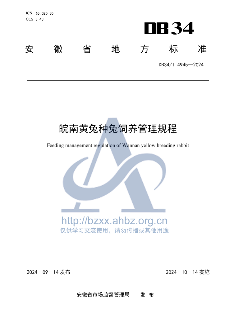 DB34/T 4945-2024 皖南黄兔种兔饲养管理规程