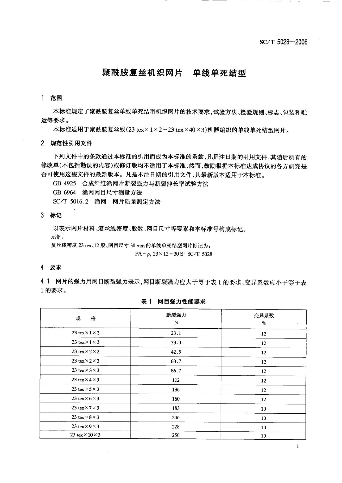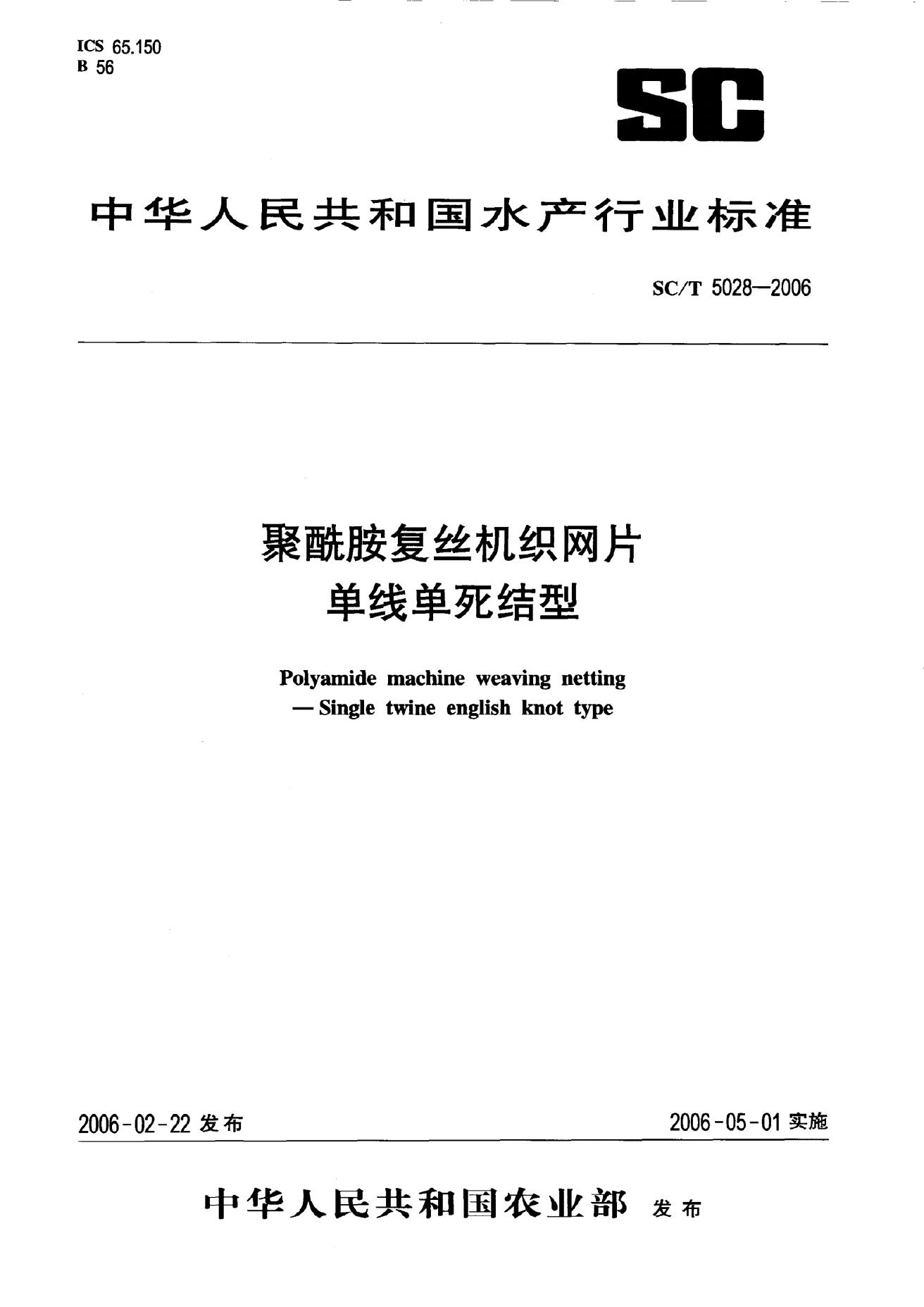 SC/T 5028-2006 聚酰胺复丝机织网片 单线单死结型