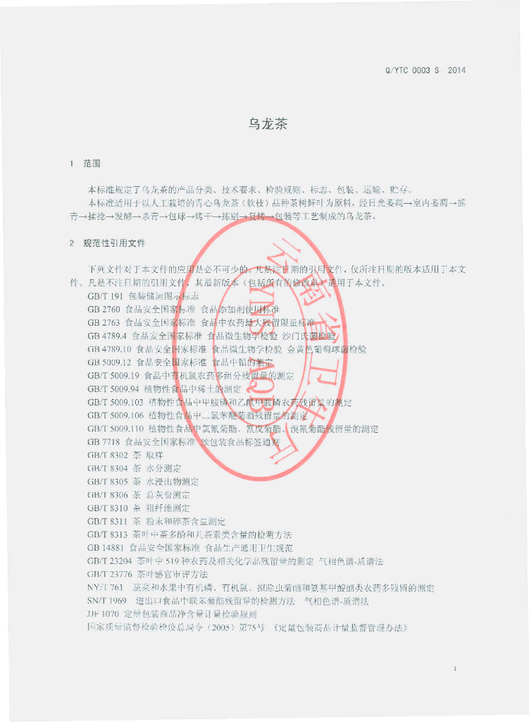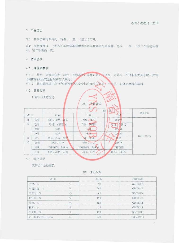 Q/YTC 0003S-2014 云南台茶茶业有限公司 乌龙茶