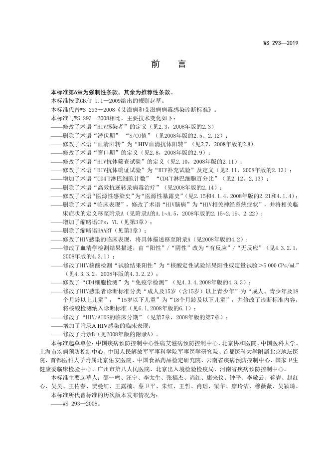 WS/T 293-2019 艾滋病和艾滋病病毒感染诊断