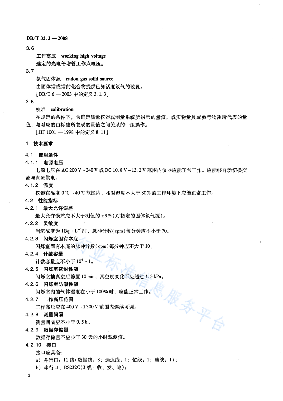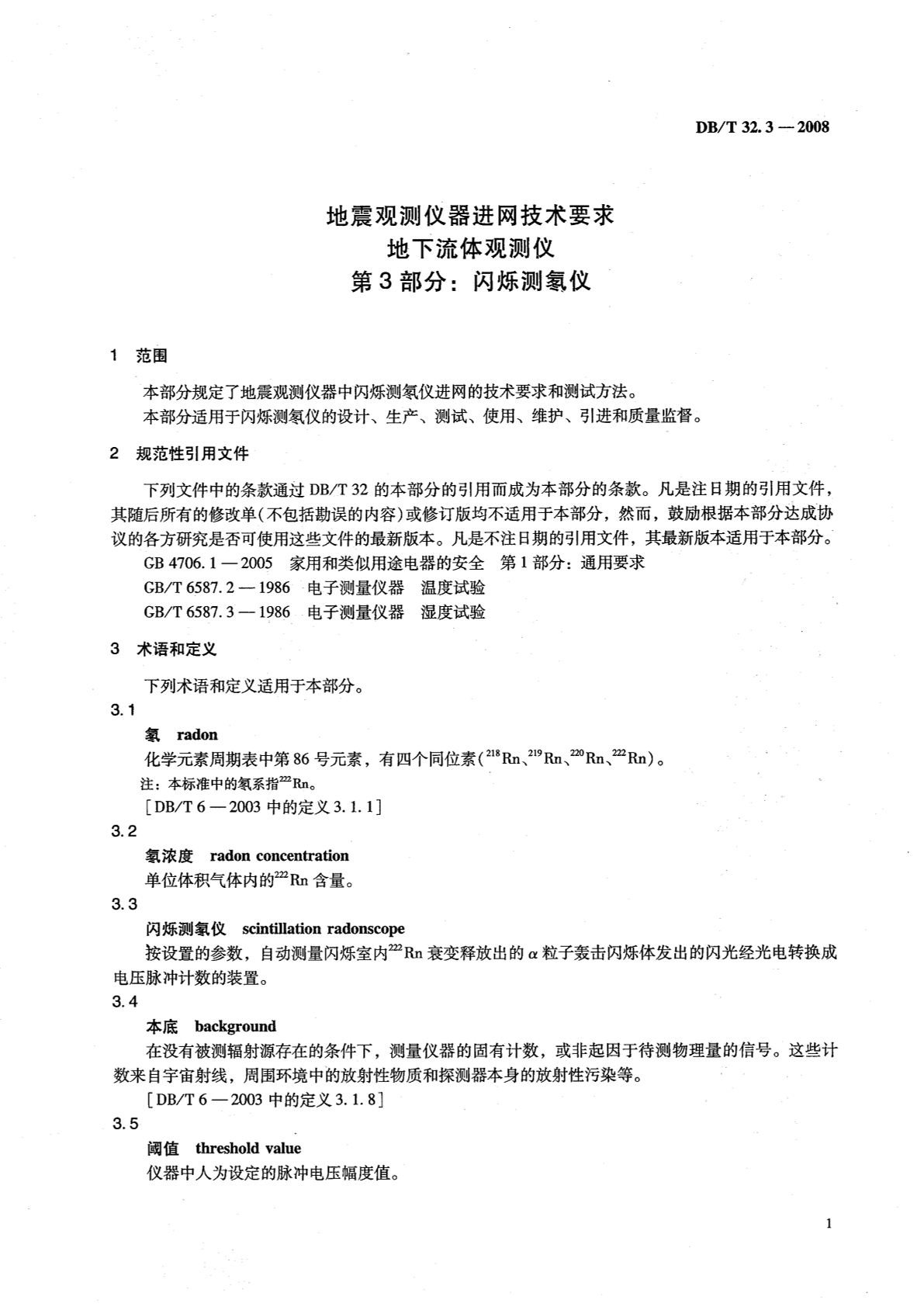 DB/T 32.3-2008 地震观测仪器进网技术要求 地下流体观测仪 第3部分:闪烁测氡仪