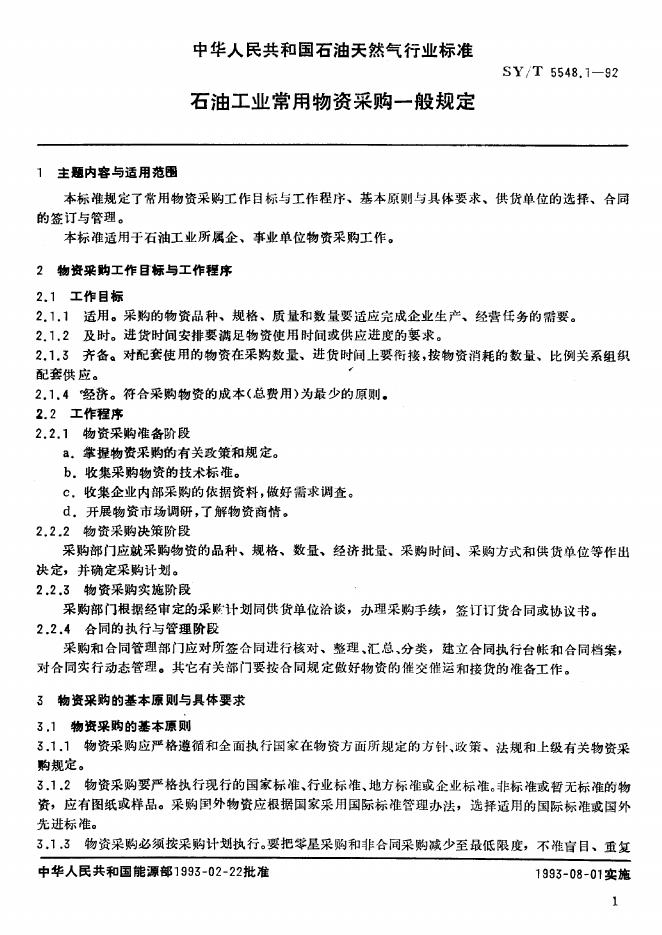 SY/T 5548.1-1992 石油工业常用物资采购一般规定
