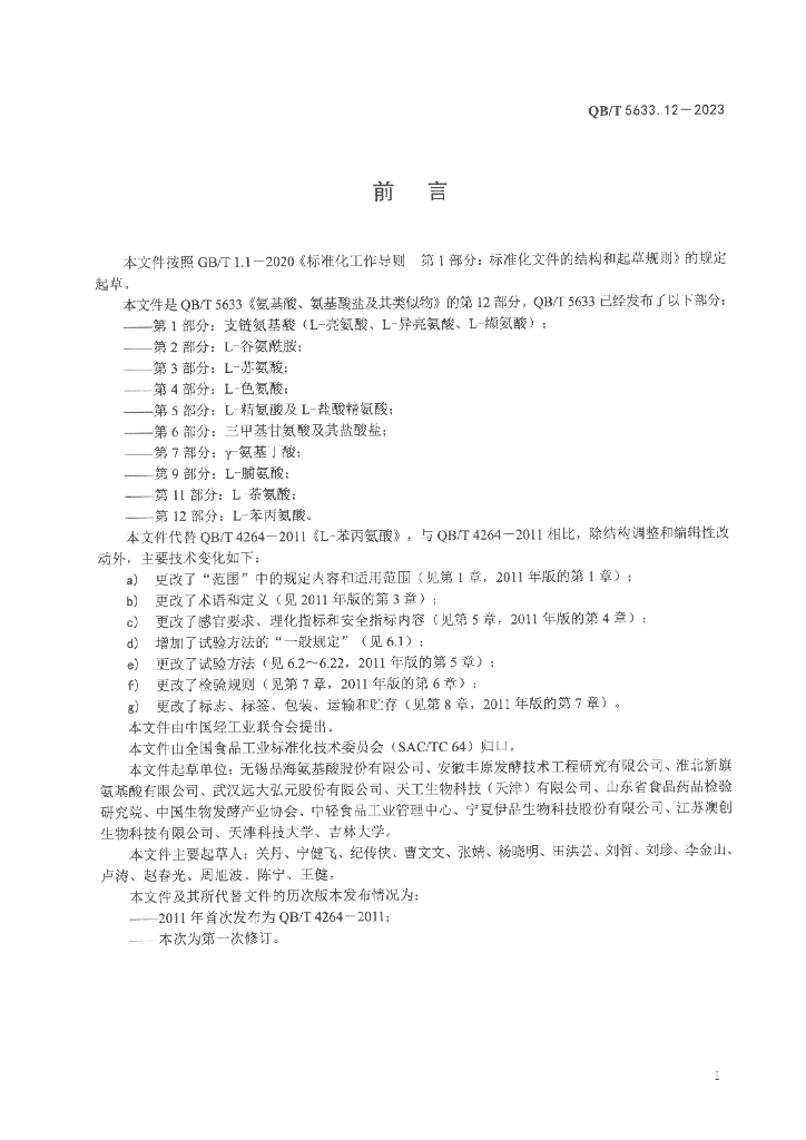 无锡晶海氨基酸股份有限公司、安徽丰原发酵技术工程研究有限公司、淮北新旗氨基酸有限公司、武汉远大弘元股份有限公司、天工生物科技(天津)有限公司、山东省食品药品检验研究院、中国生物发酵产业协会、中轻食品工业管理中心、宁夏伊品生物科技股份有限公司、江苏澳创生物科技有限公司、天津科技大学、吉林大学