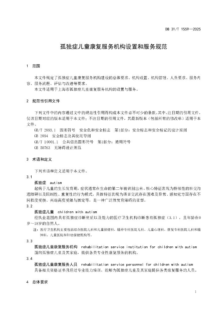 DB31/T 1559-2025 孤独症儿童康复服务机构设置和服务规范