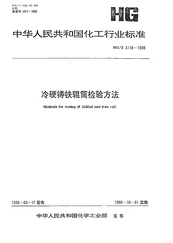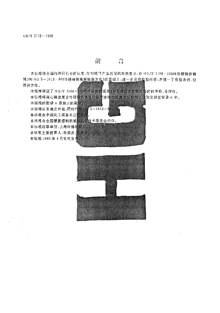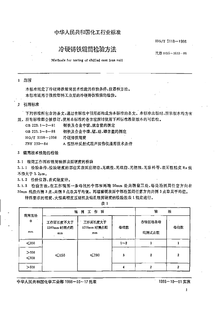 HG/T 3118-1998 冷硬铸铁辊筒检验方法