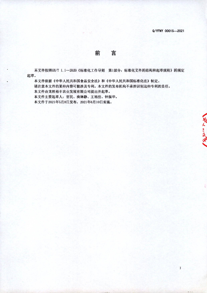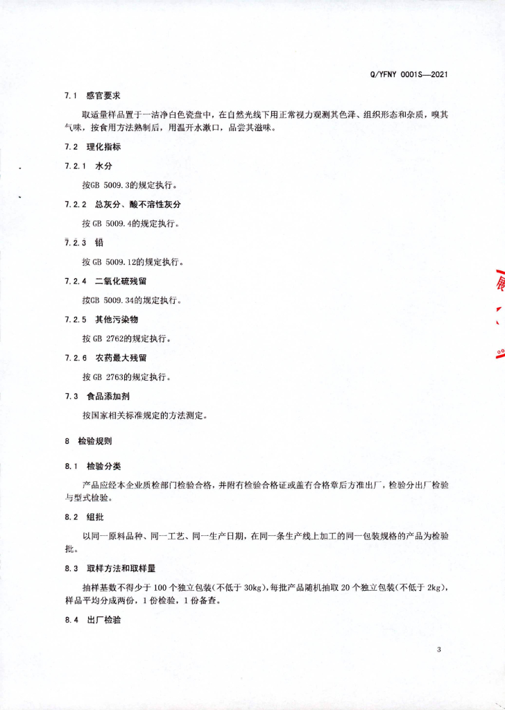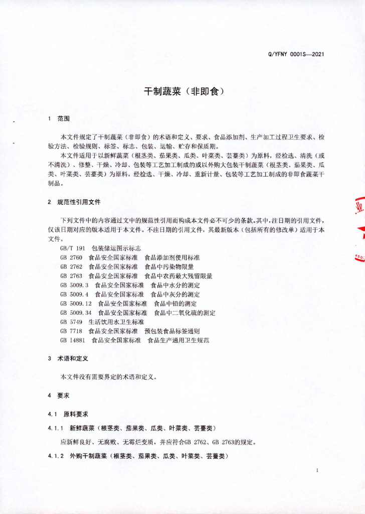 Q/YFNY 0001S-2021 干制蔬菜(非即食)