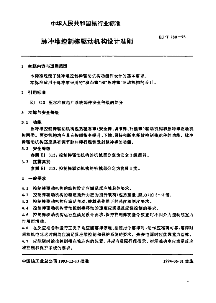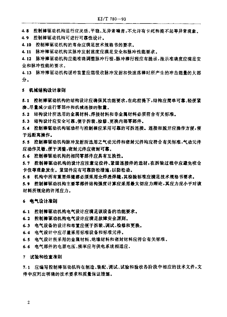EJ/T 780-1993 脉冲堆控制棒驱动机构设计准则
