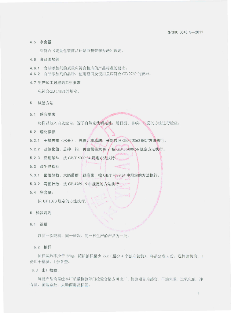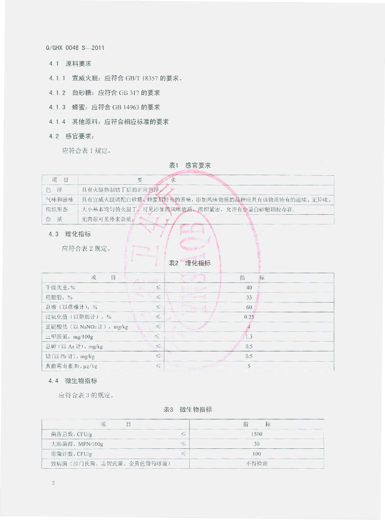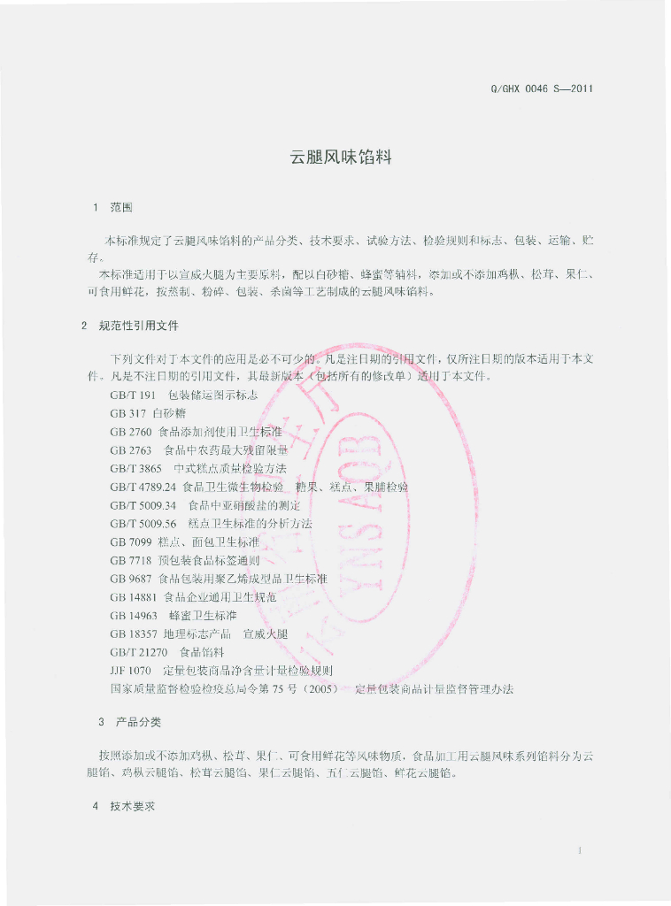 Q/GHX 0046S-2011 云腿风味馅料
