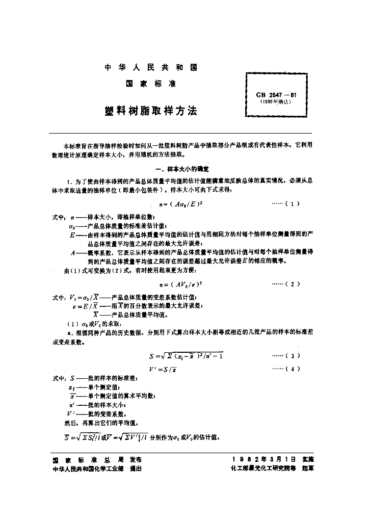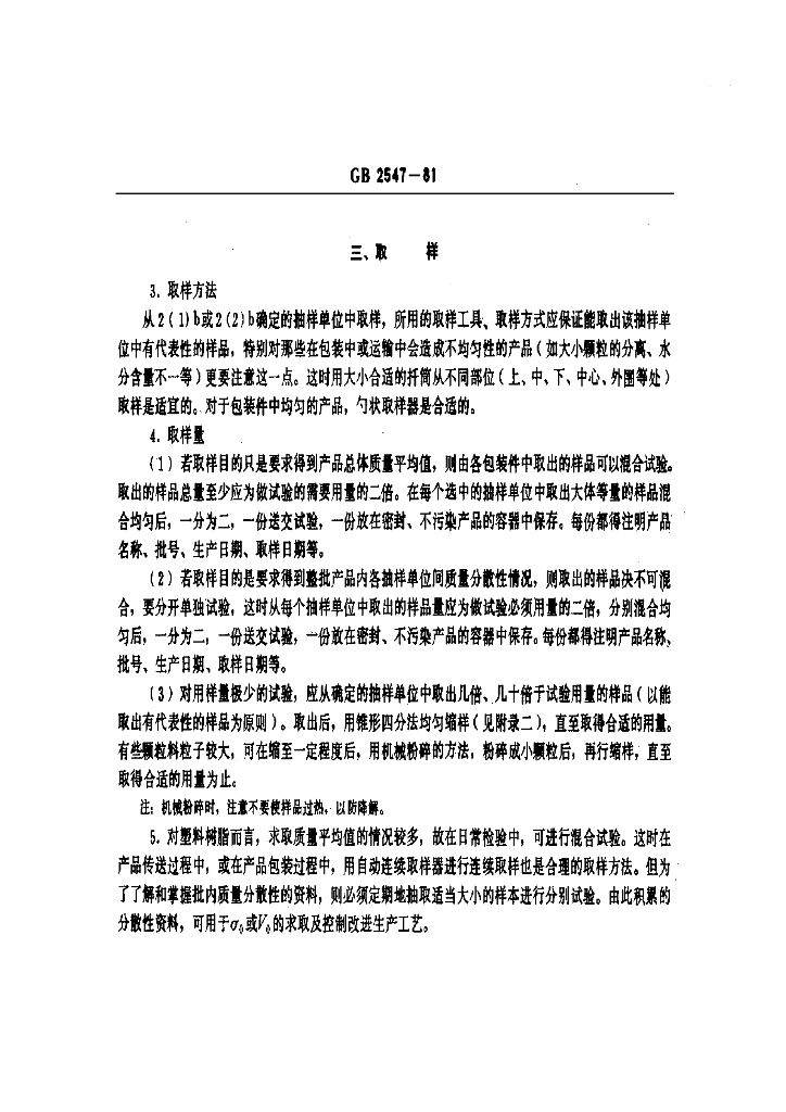 GB/T 2547-1981 塑料树脂取样方法