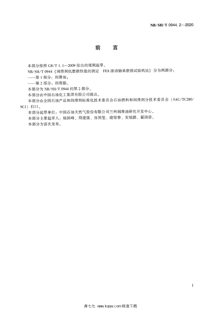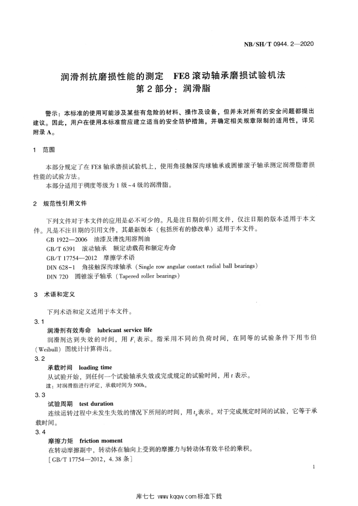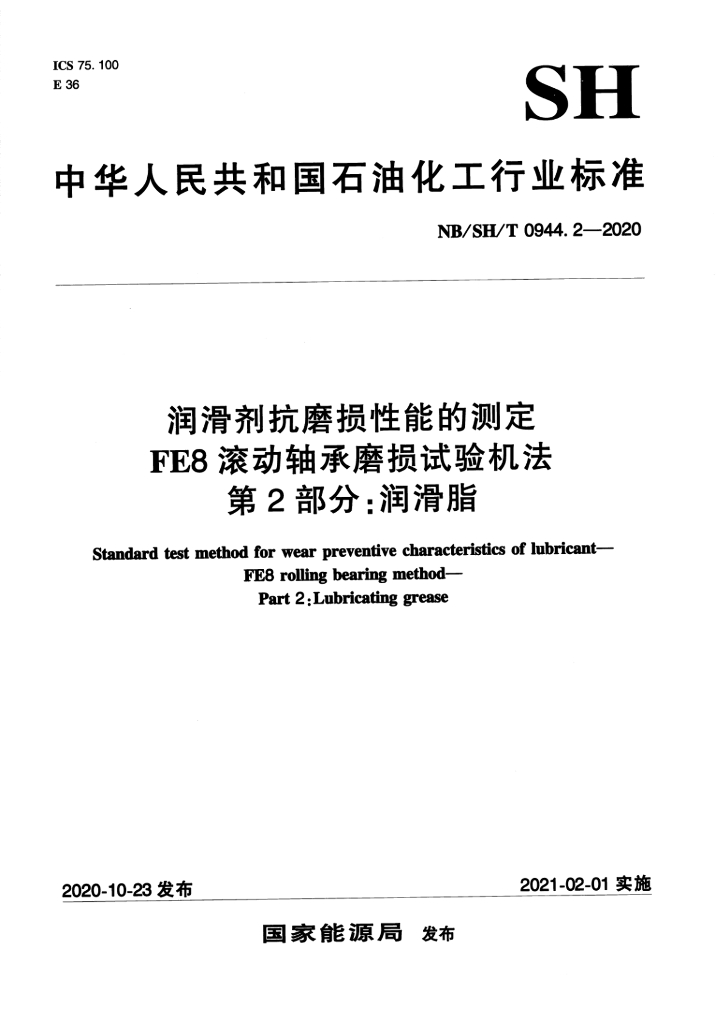 NB/SH/T 0944.2-2020 润滑剂抗磨损性能的测定 FE8滚动轴承磨损试验机法 第2部分:润滑脂