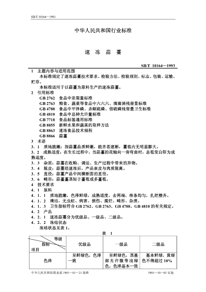 GH/T 1176-2017 速冻蒜薹
