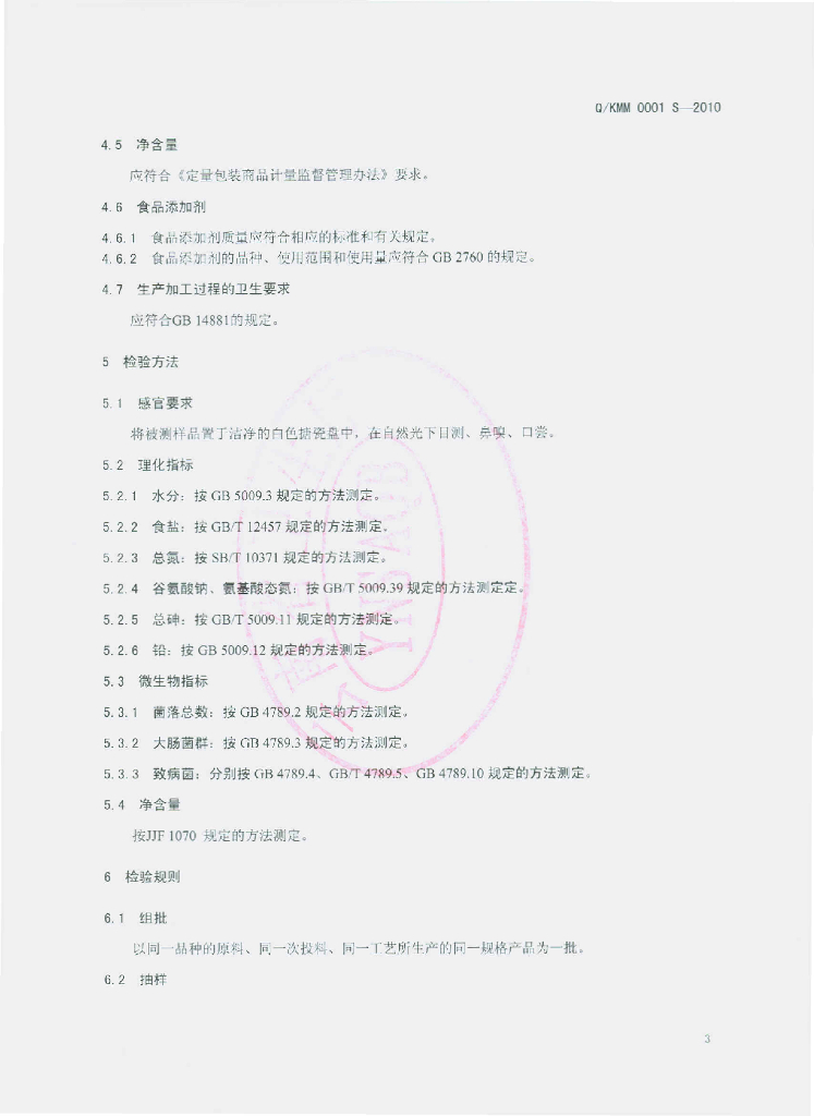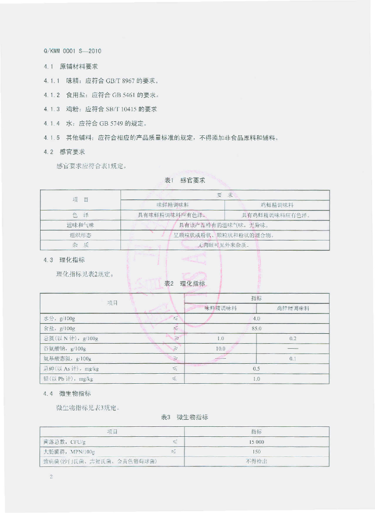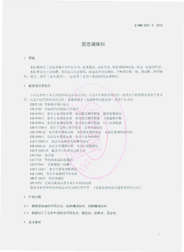 Q/KMM 0001S-2010 固态调味料
