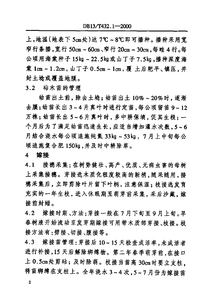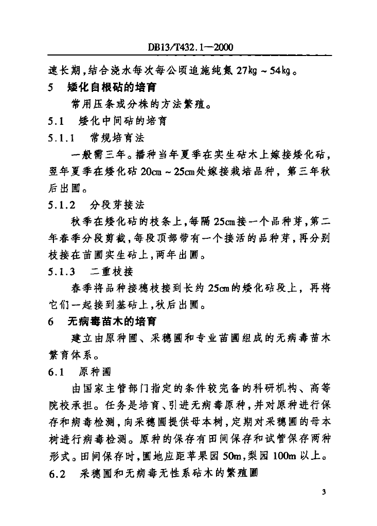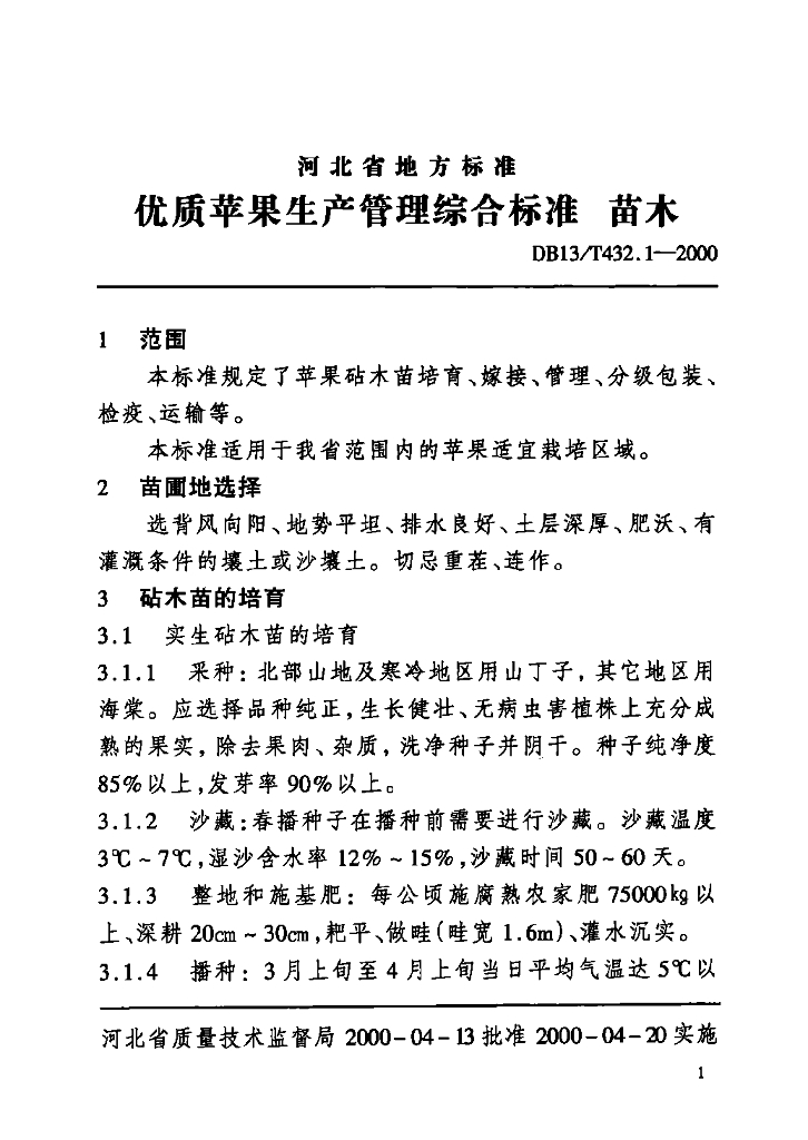 DB13/T 432.1-2000 优质苹果生产管理综合标准 苗木