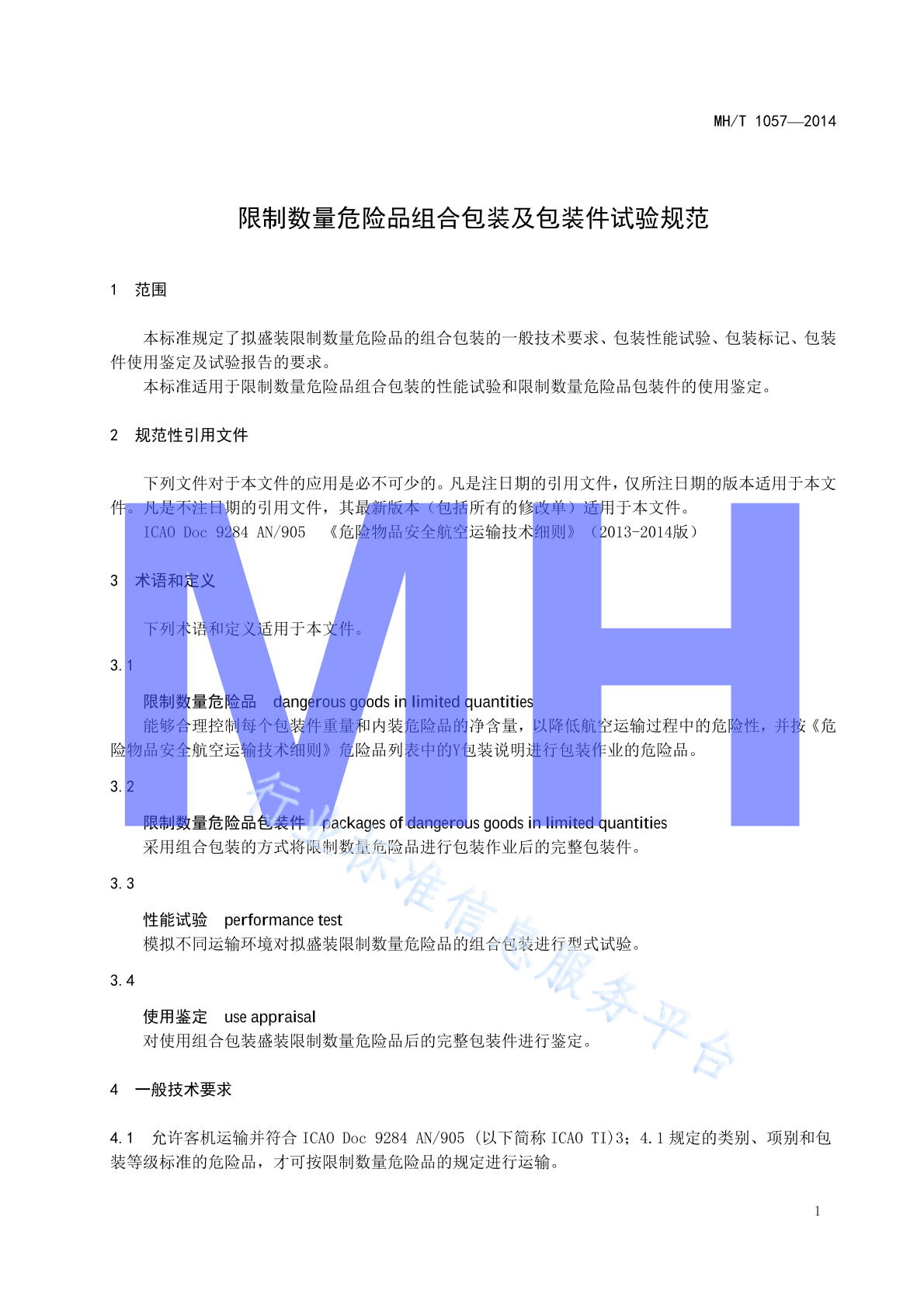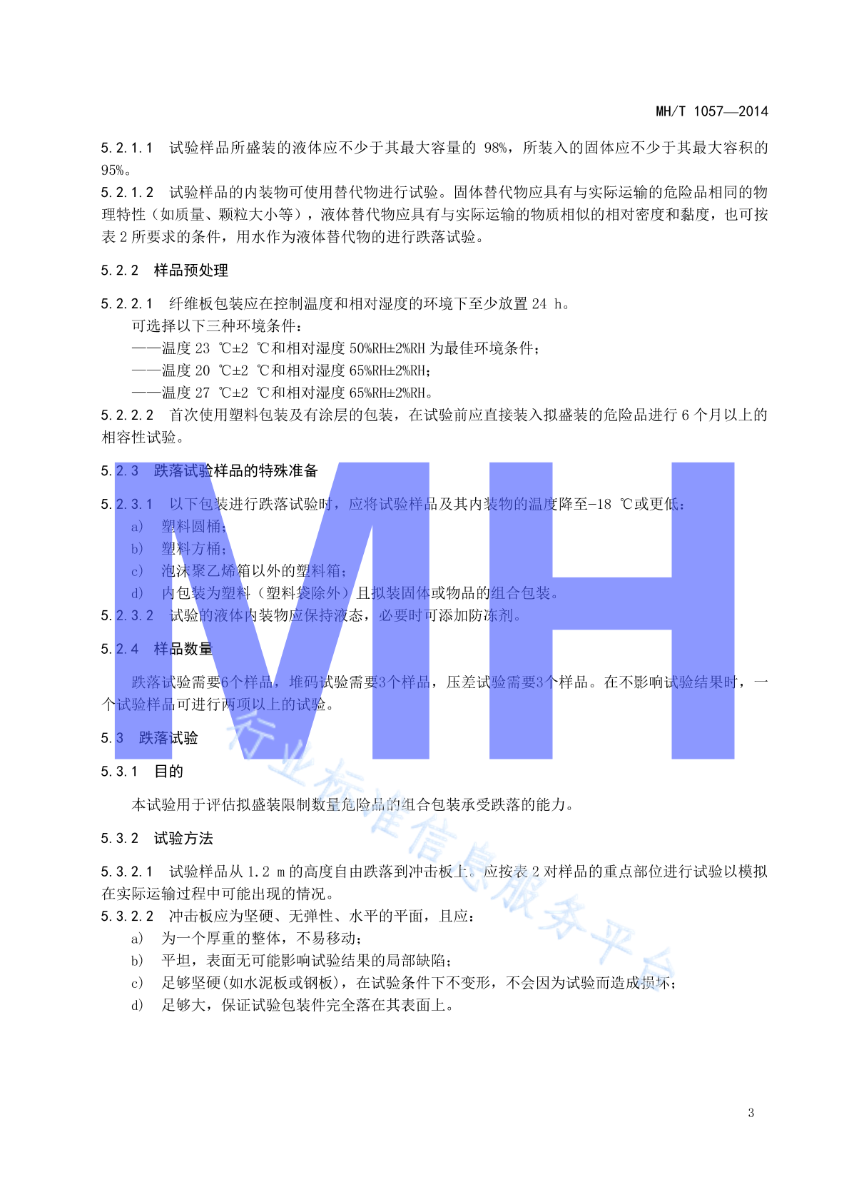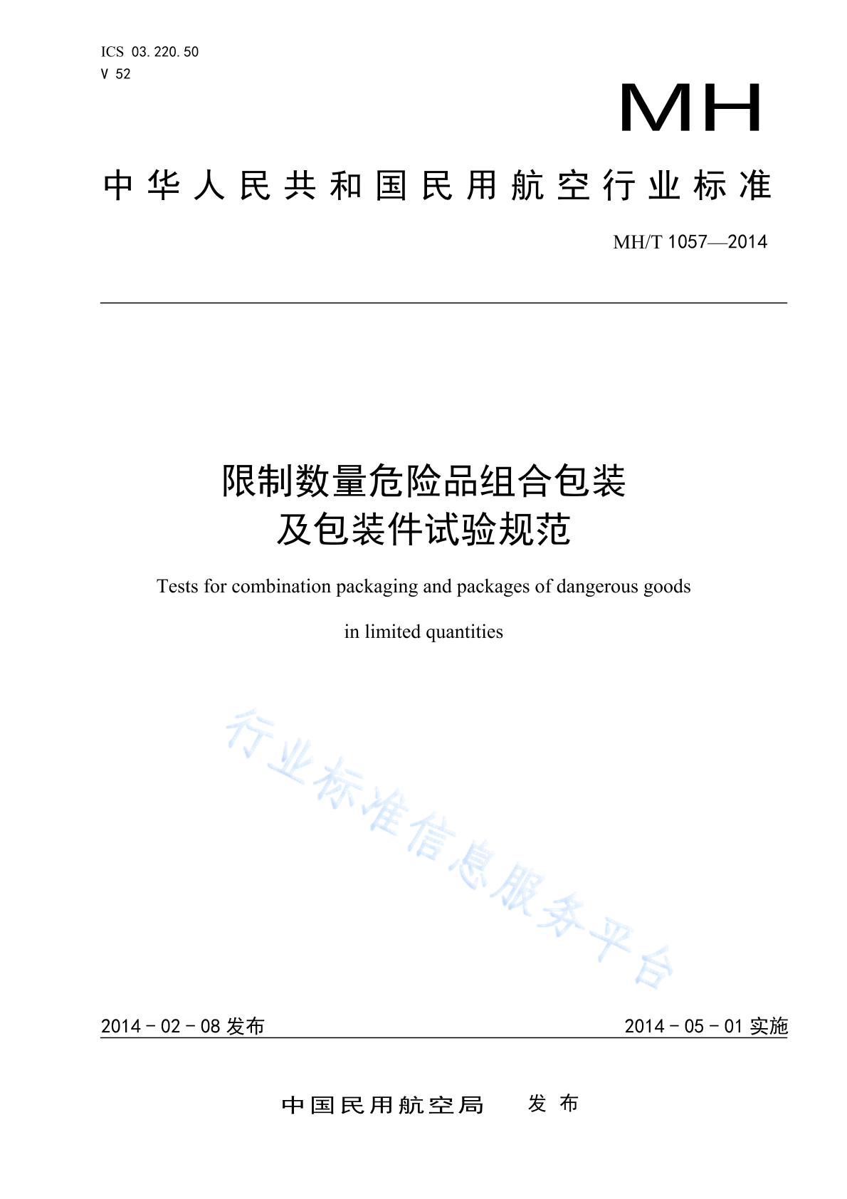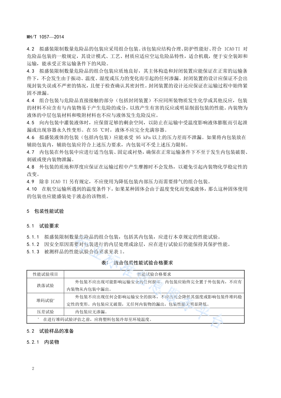 MH/T 1057-2014 限制数量危险品组合包装及包装件试验规范