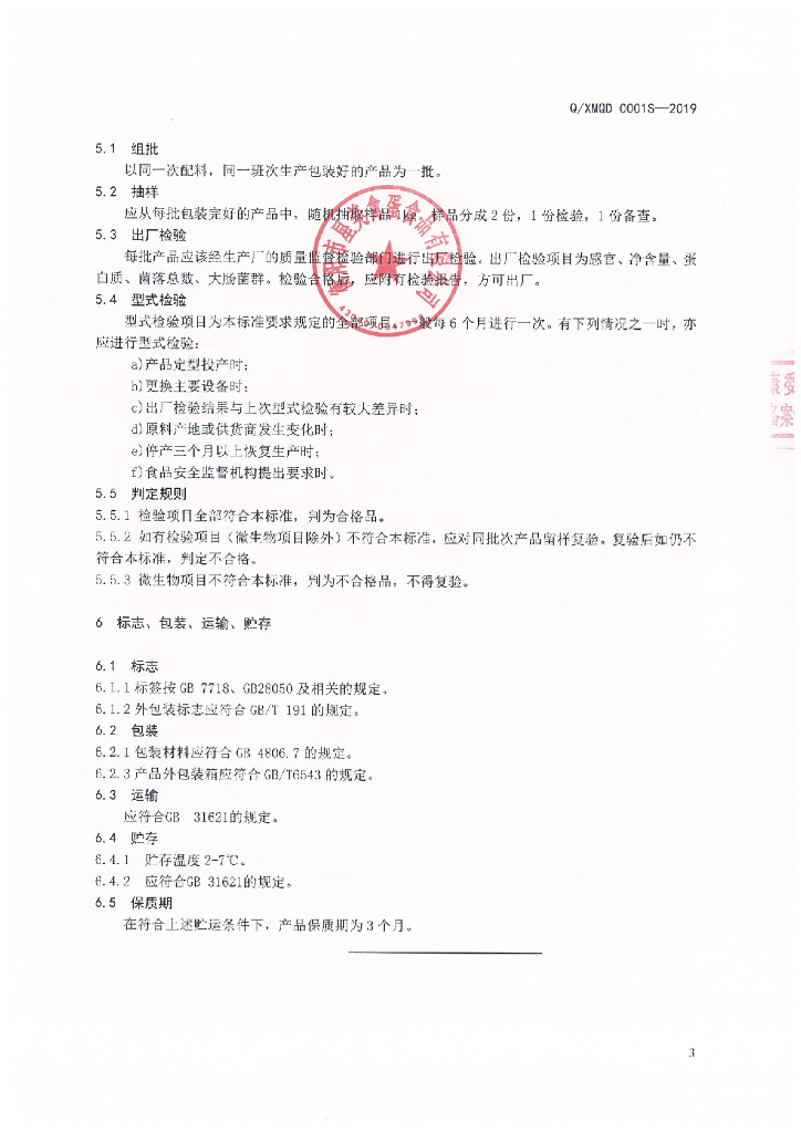Q/XMQD 0001S-2019 热凝固蛋制品